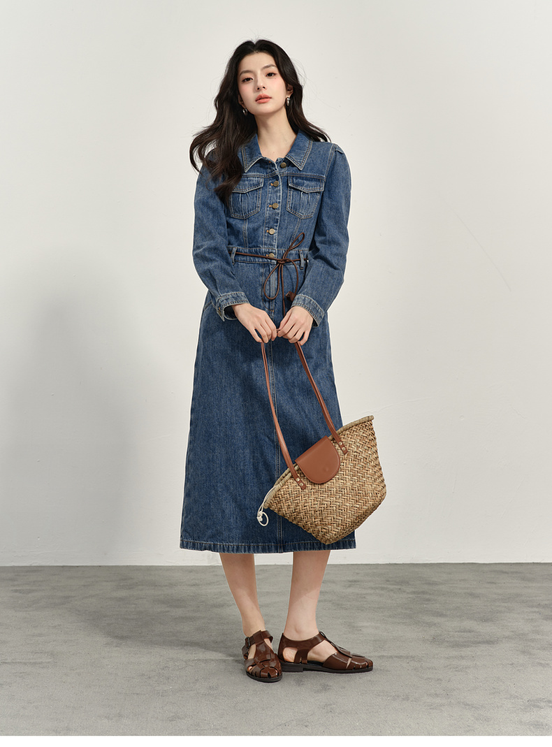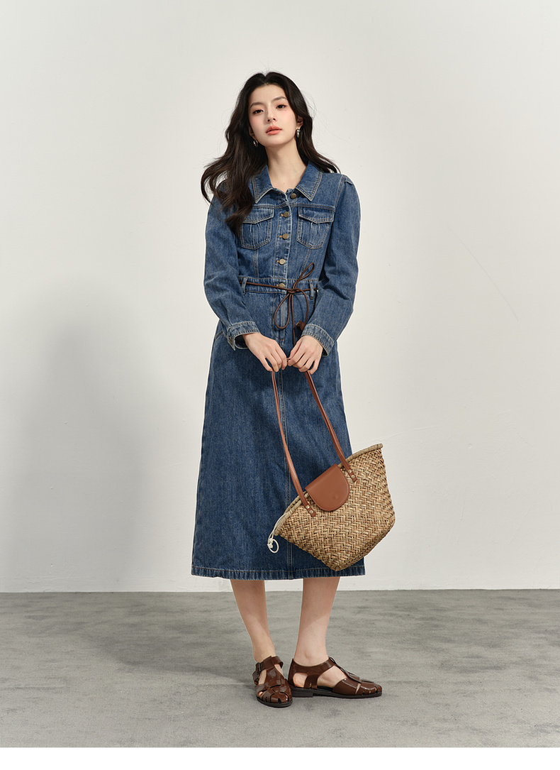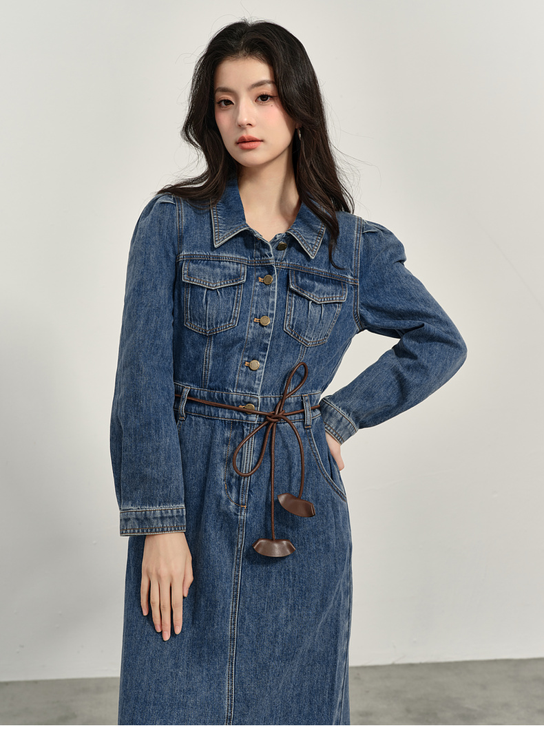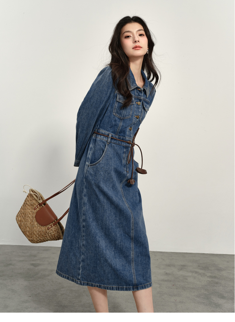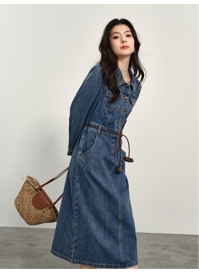 【商场同款】诗凡黎翻领牛仔连衣裙2025春新款长裙女3G3290611