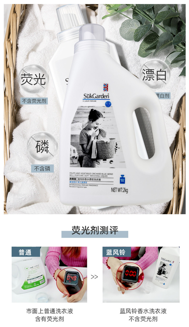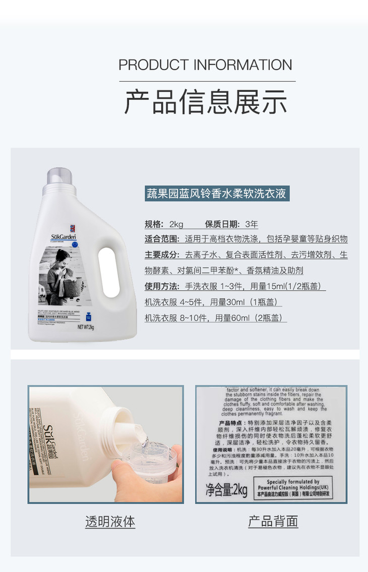 蔬果园蓝风铃香水柔软洗衣液持久留香型2kg*2瓶(不发货 门店自提)
