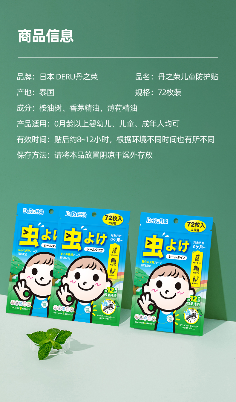 DeRU丹栄 儿童植物驱蚊贴(72片)