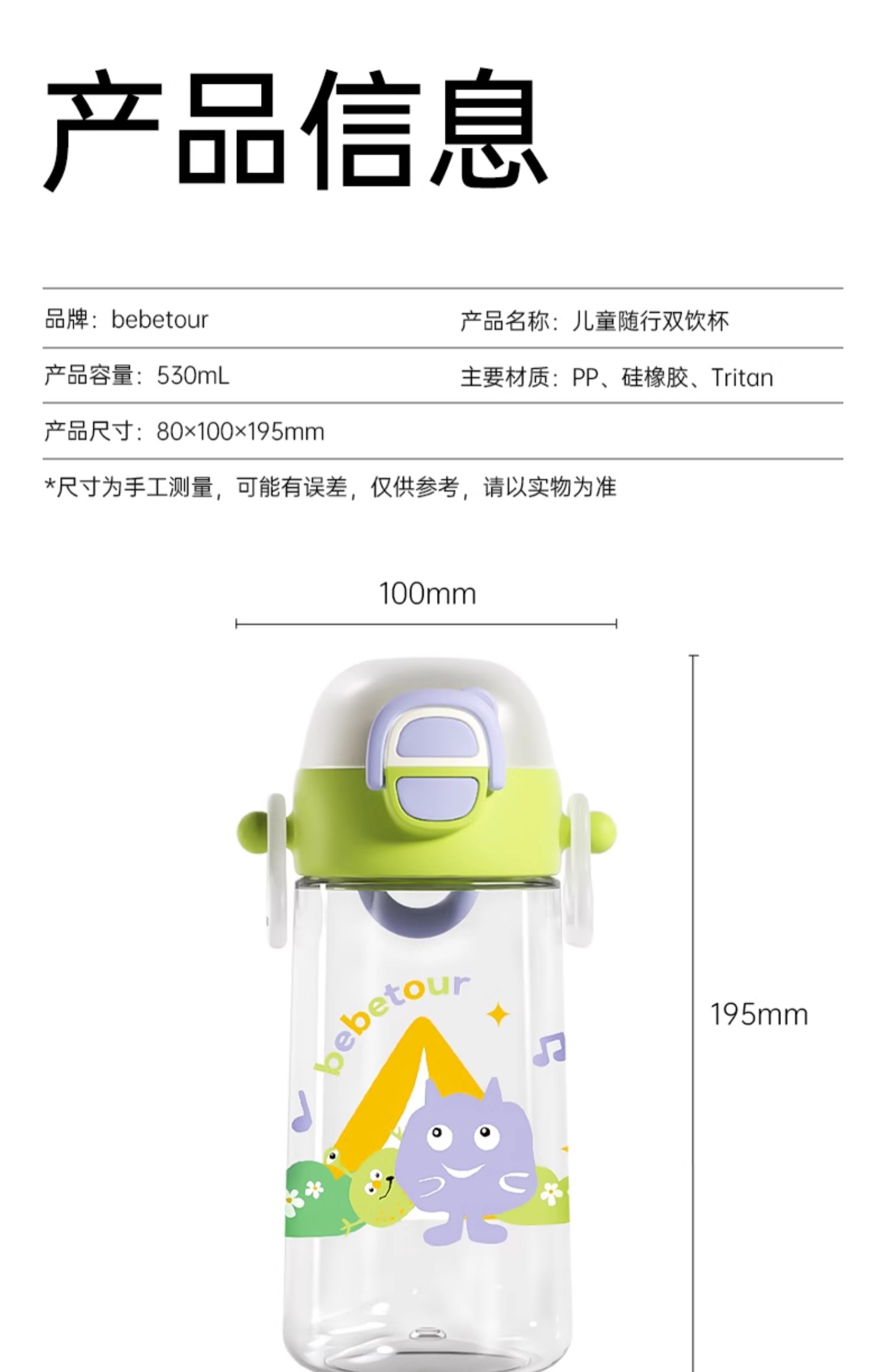 BEBETOUR 儿童随行双饮杯 530mL