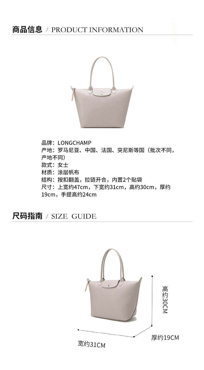 Longchamp/珑骧 【22春夏新款】 女士LE PLIAGE CITY系列大号涂层帆布长柄手提单肩包饺子包 1899 HYQ