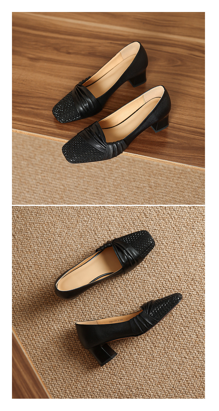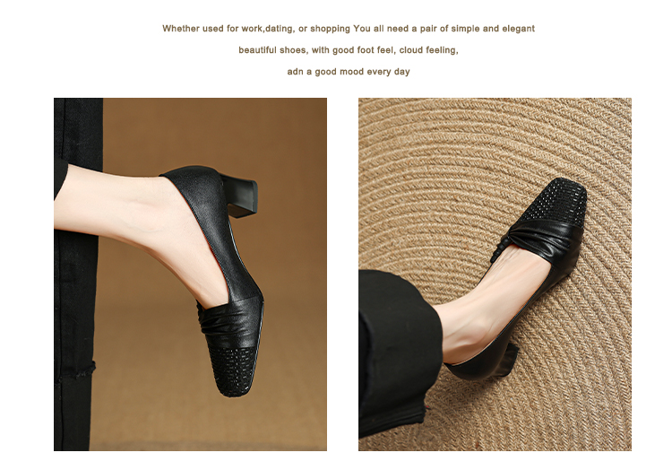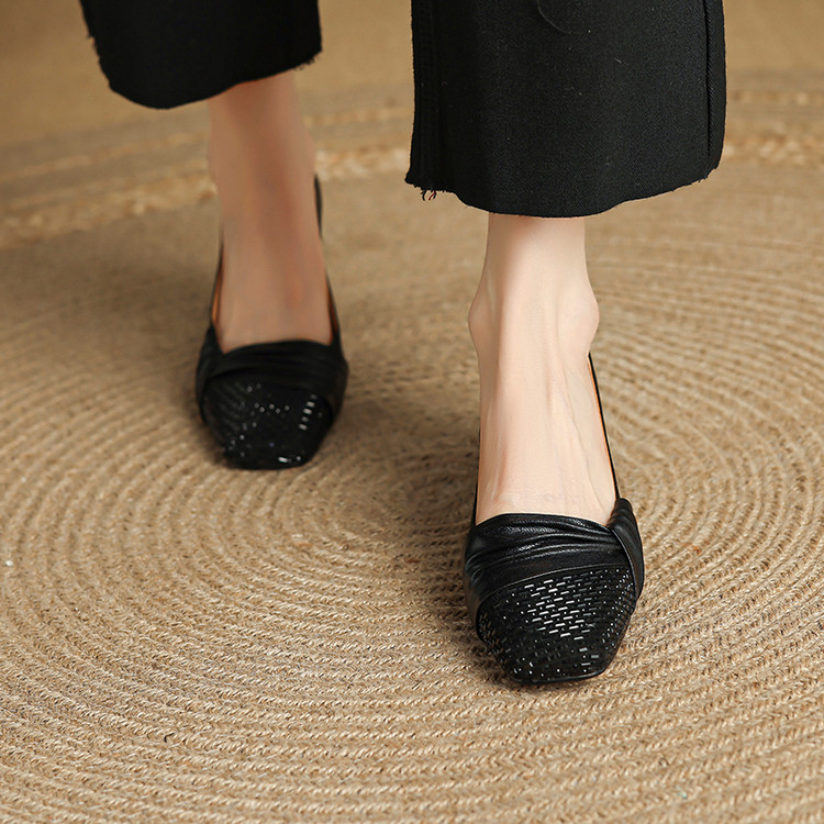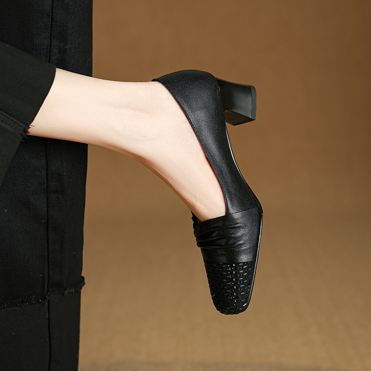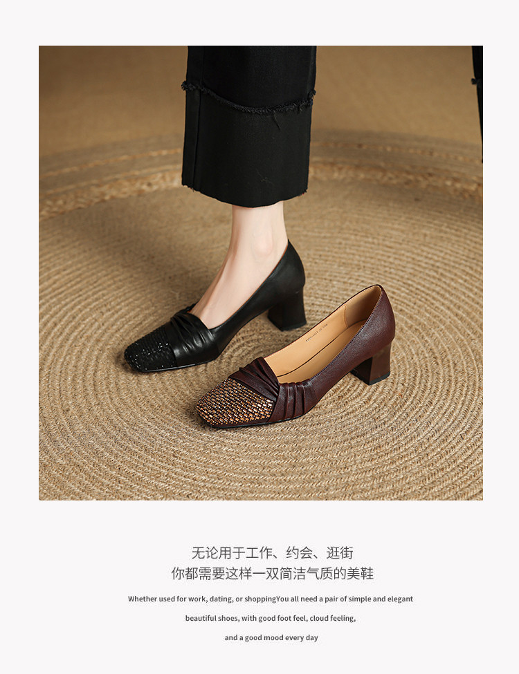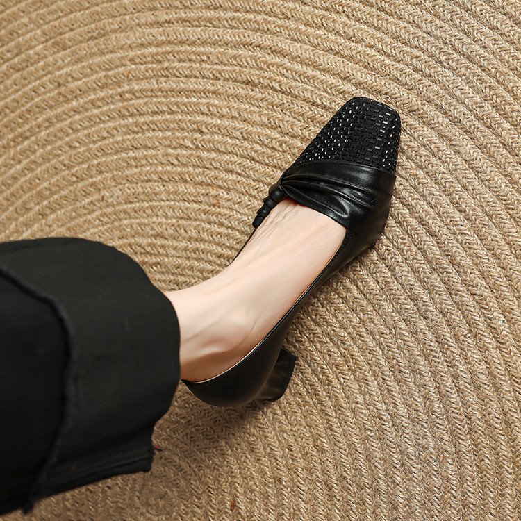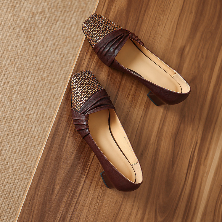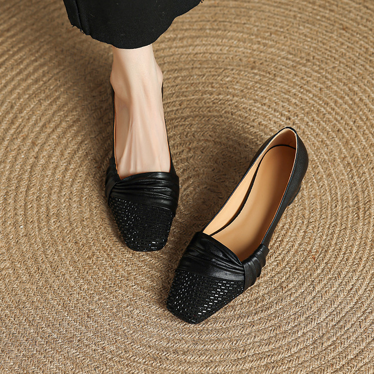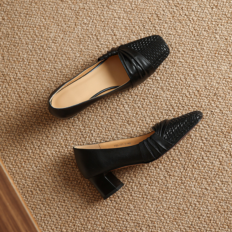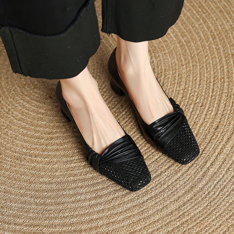 【预售5天】法式复古手抓羊皮优雅低跟单鞋女通勤真皮方头浅口小皮鞋MLS&A1030