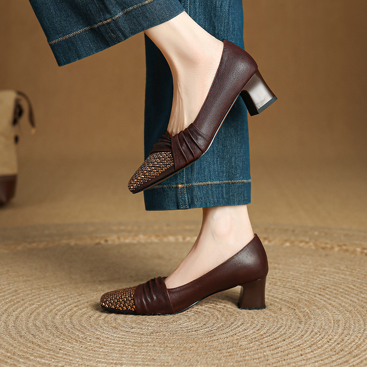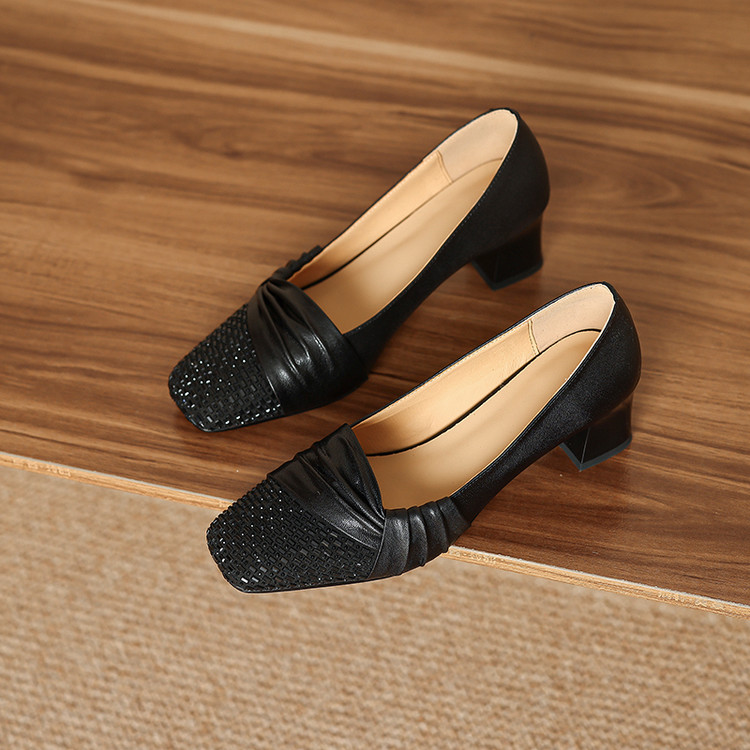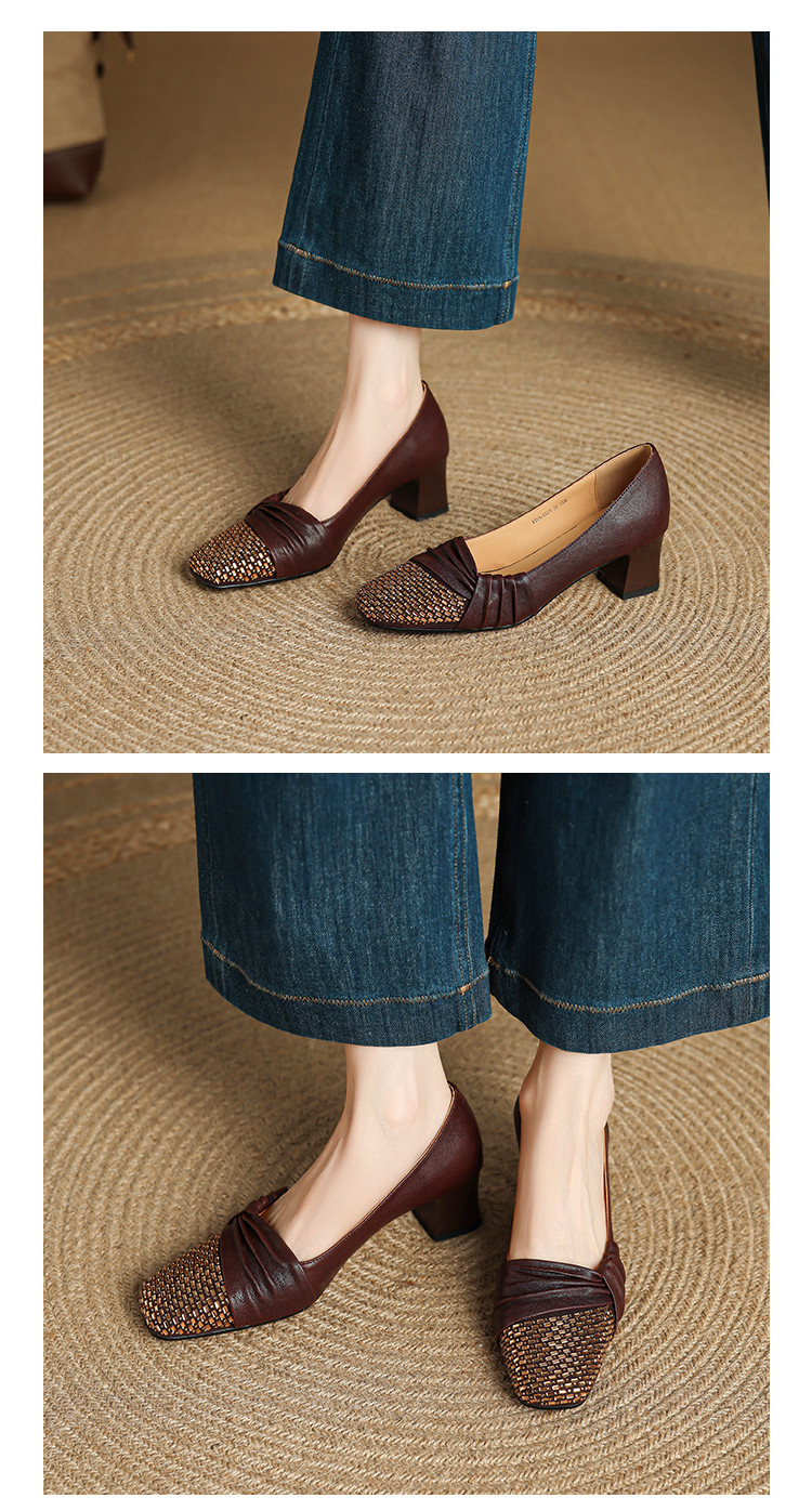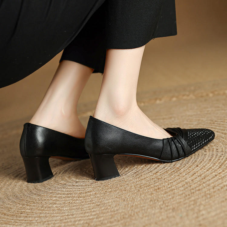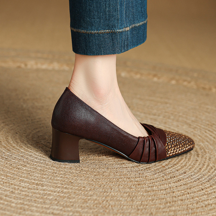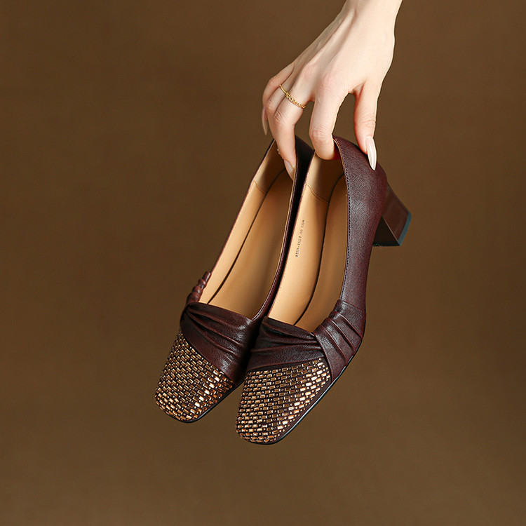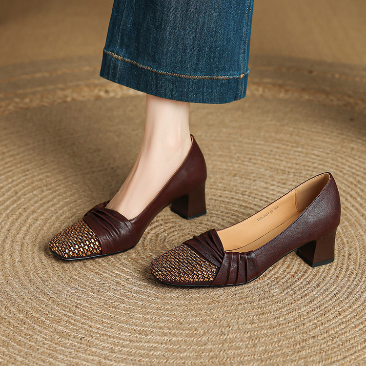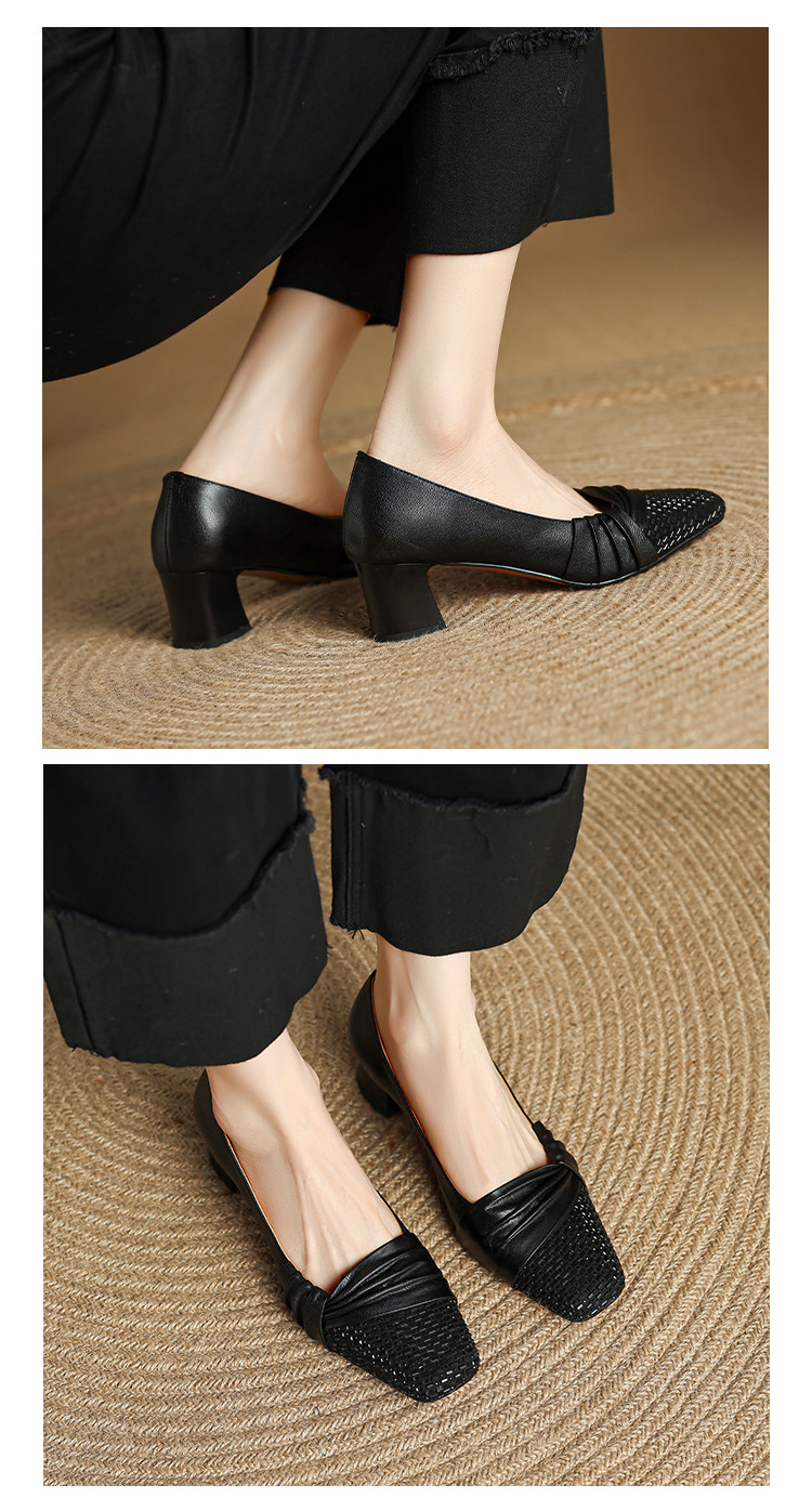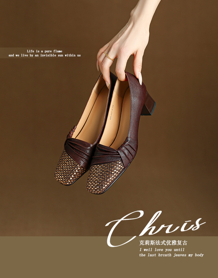 【预售5天】法式复古手抓羊皮优雅低跟单鞋女通勤真皮方头浅口小皮鞋MLS&A1030