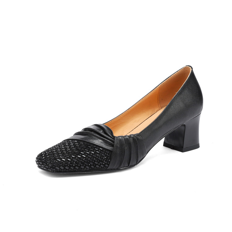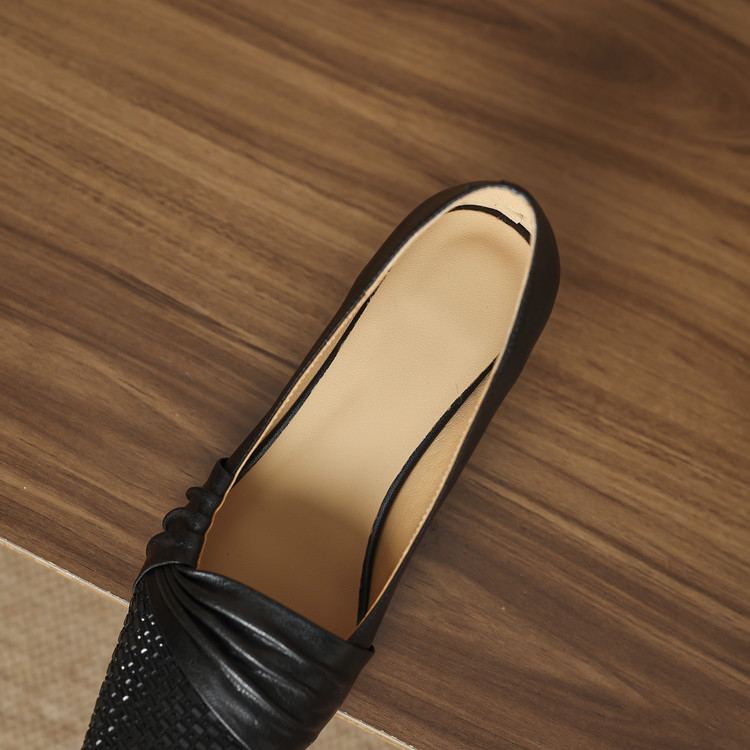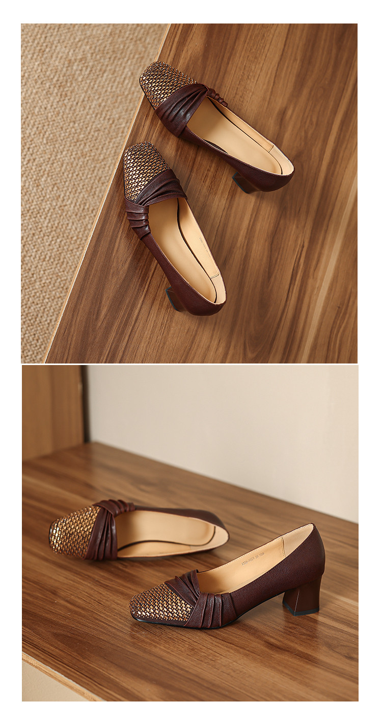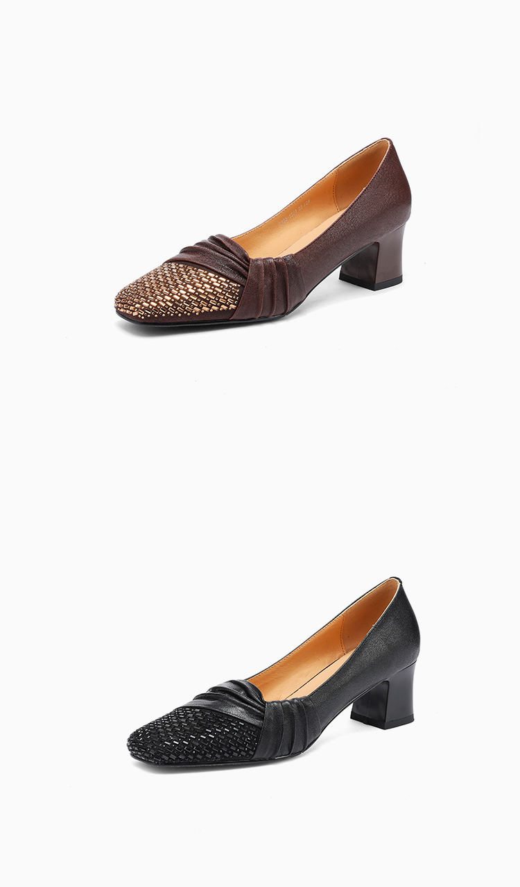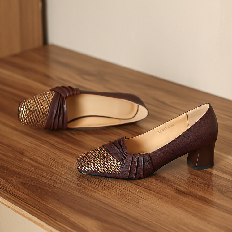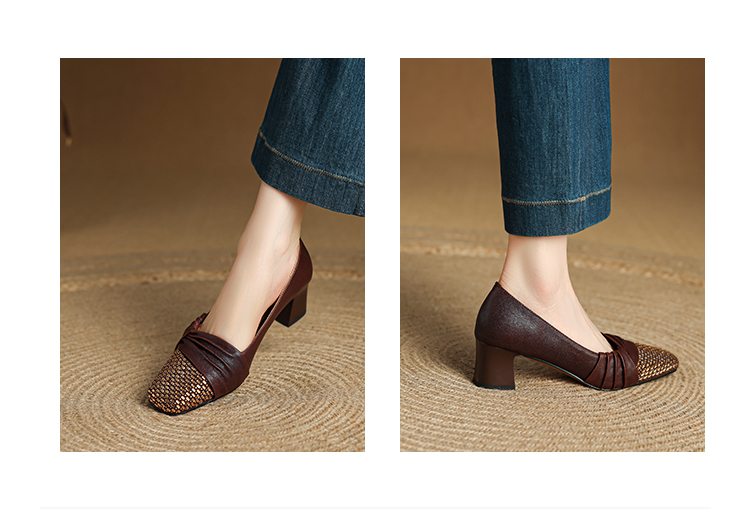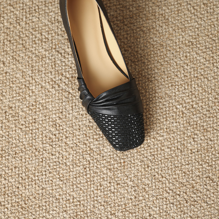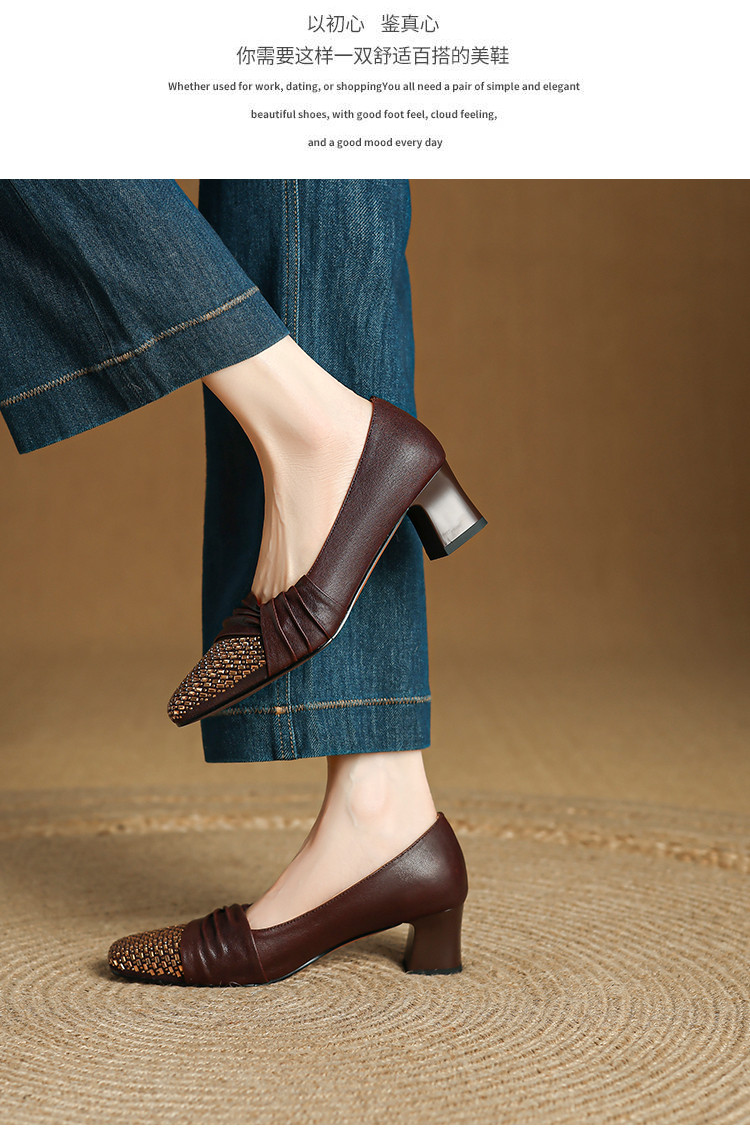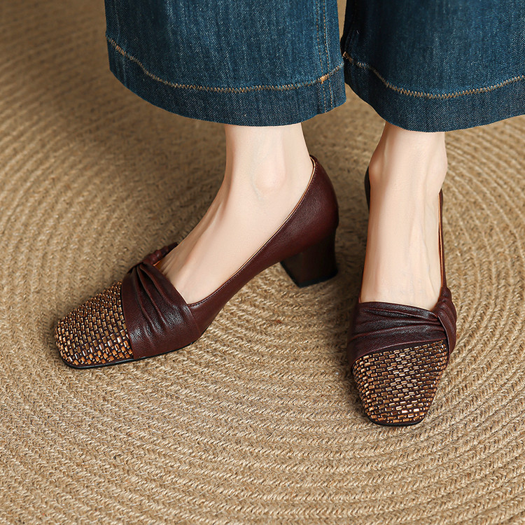 【预售5天】法式复古手抓羊皮优雅低跟单鞋女通勤真皮方头浅口小皮鞋MLS&A1030