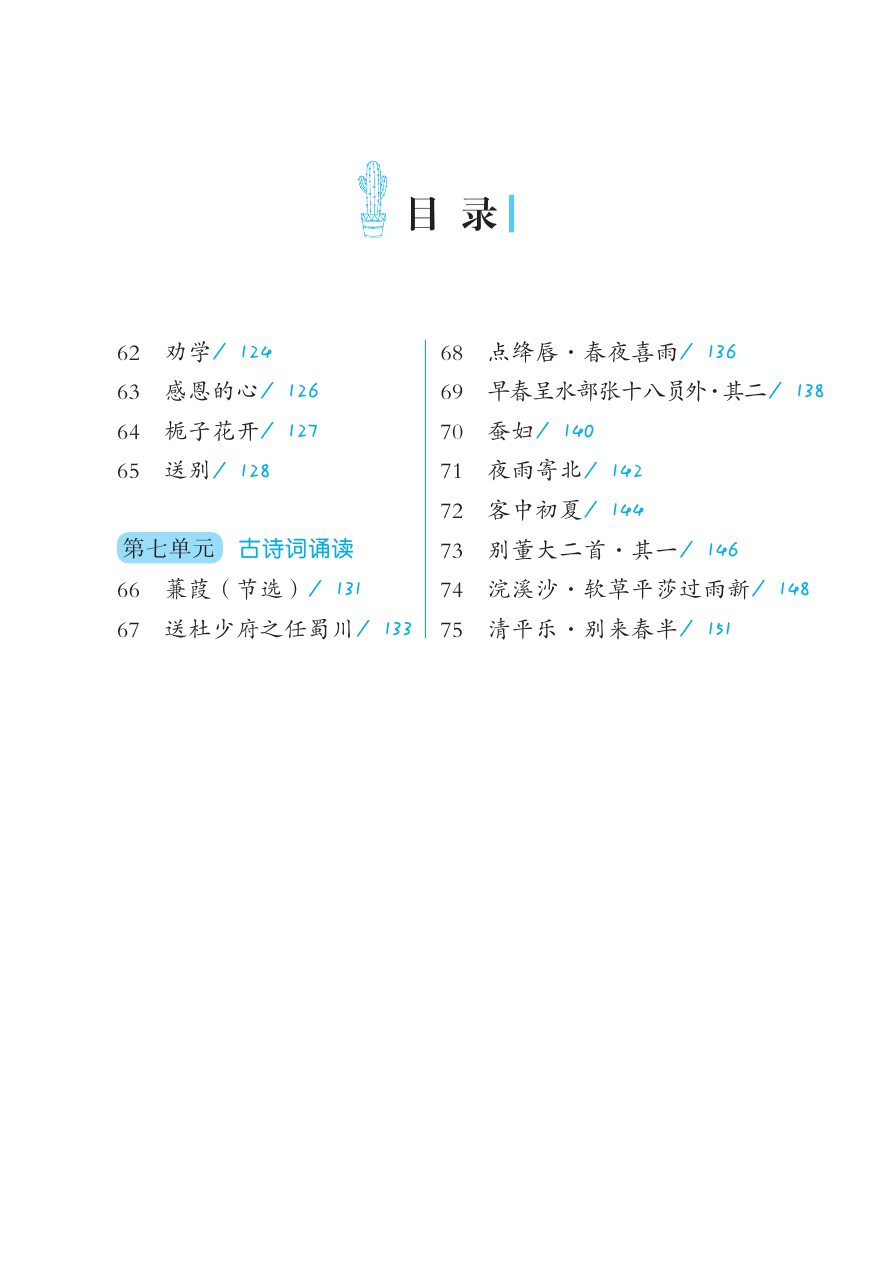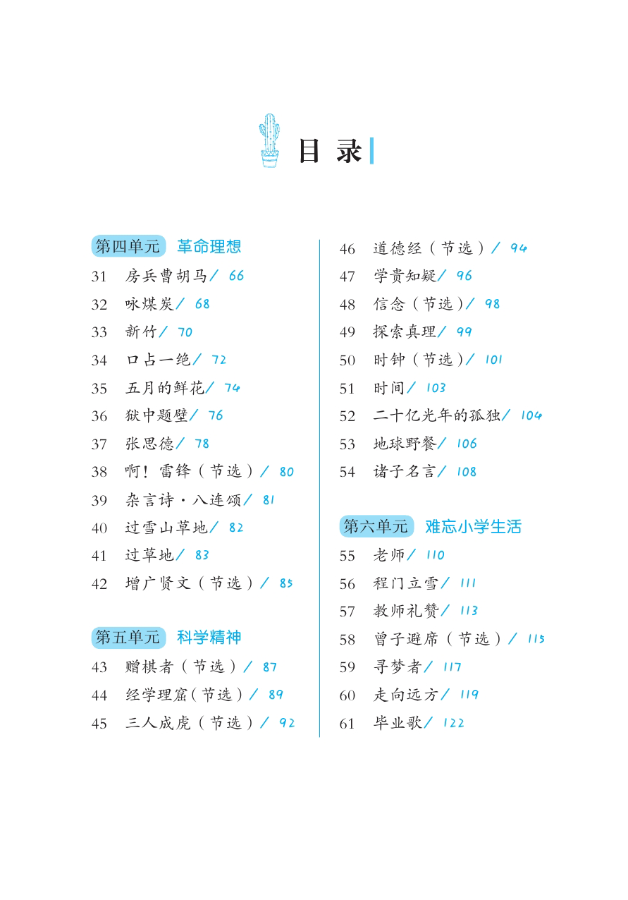 2.从一年级到六年级,每册有15首左右的古诗,约占20%,整套书古诗约180首。加上教材里的129首,孩子在小学阶段就可以诵读古诗300首了。这可谓真正的“熟读古诗三百首,不会作诗也会吟”。