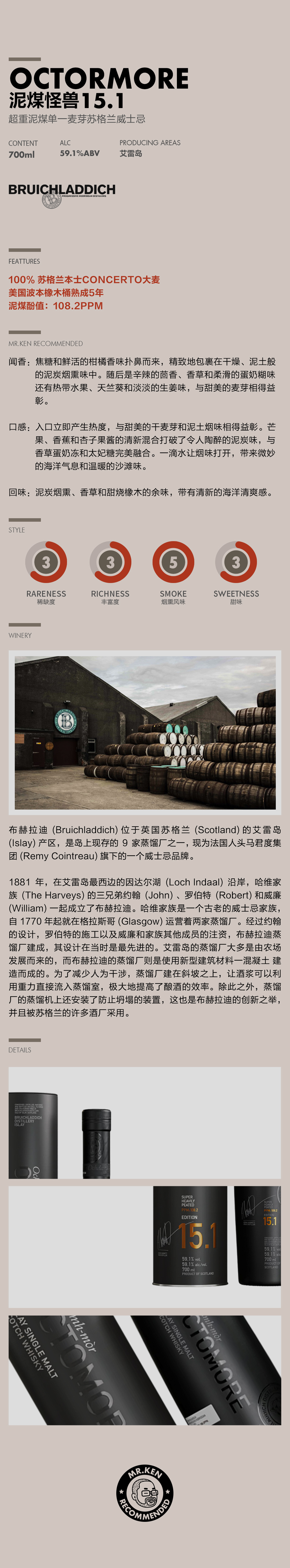 【套组】泥煤怪兽(Octomore) 15.1/2/3超重泥煤单一麦芽苏格兰威士忌