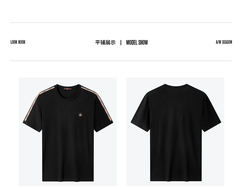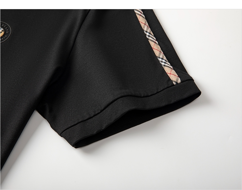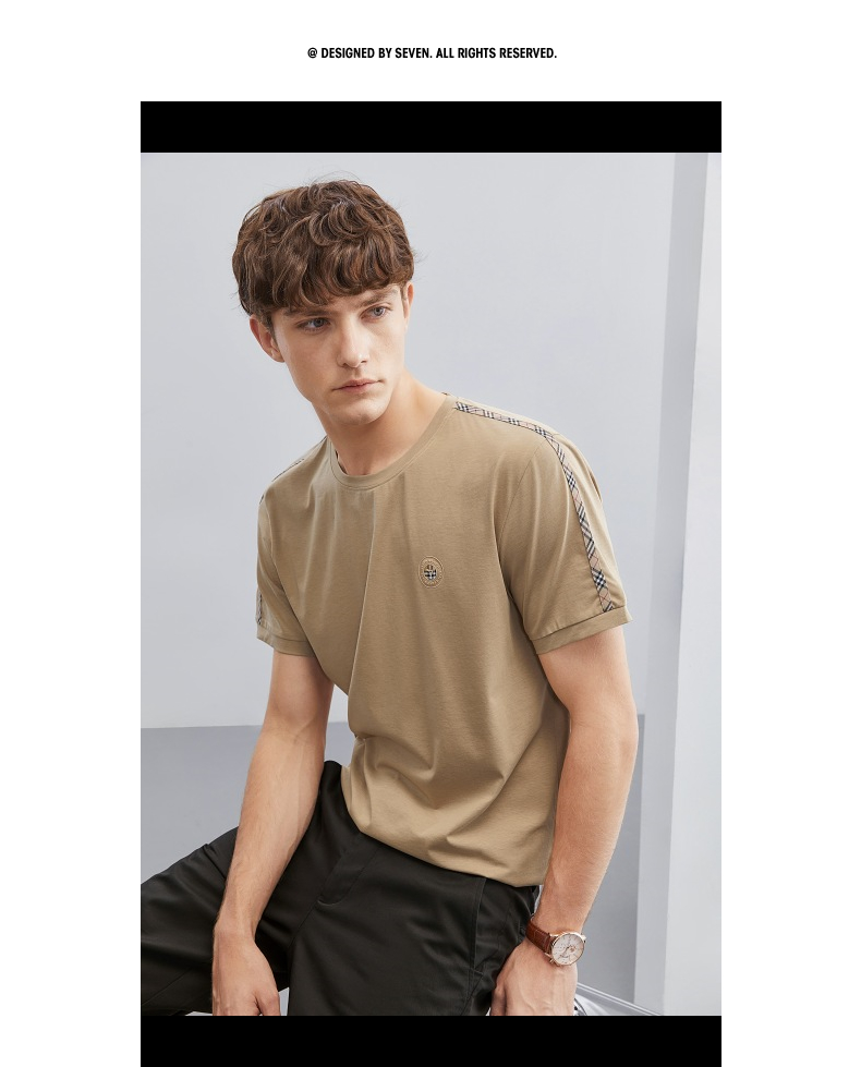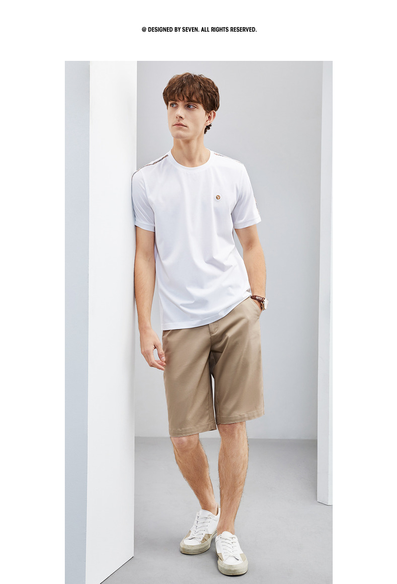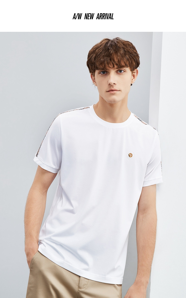 柒牌短袖t恤男夏季新款时尚休闲中青年男士格纹织带圆领上衣124T73010