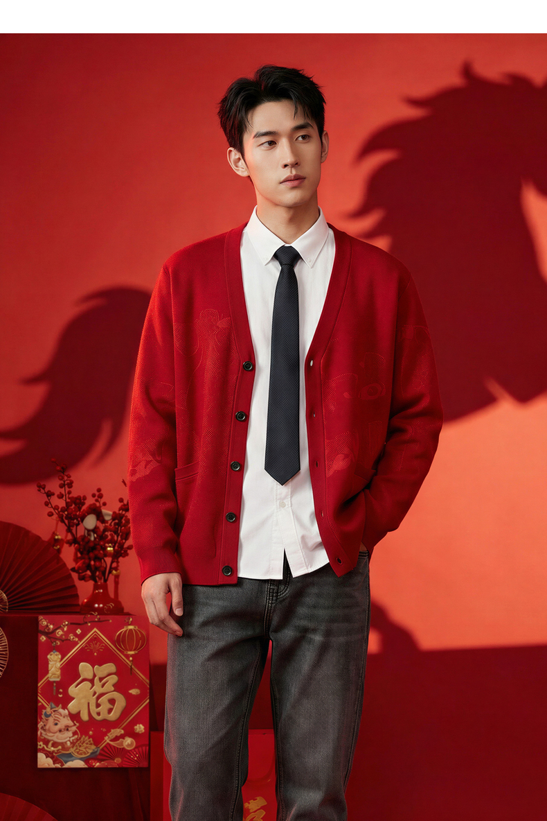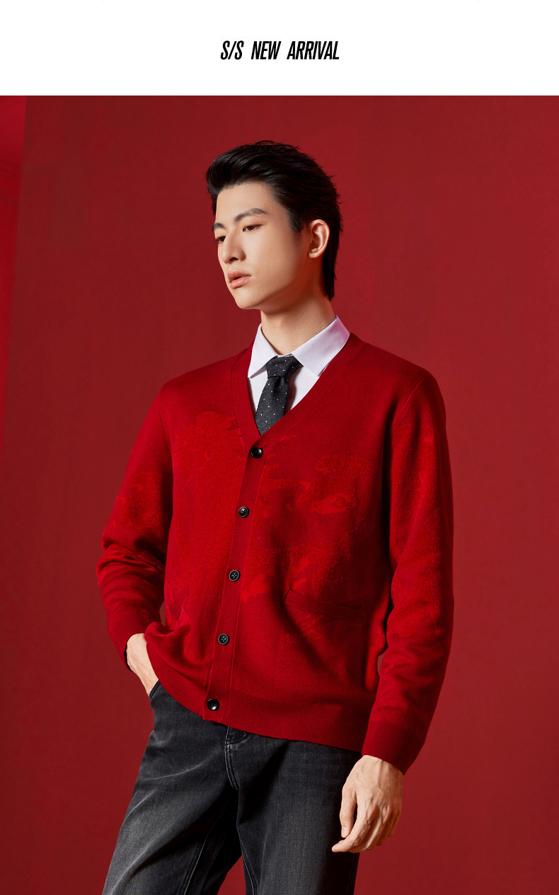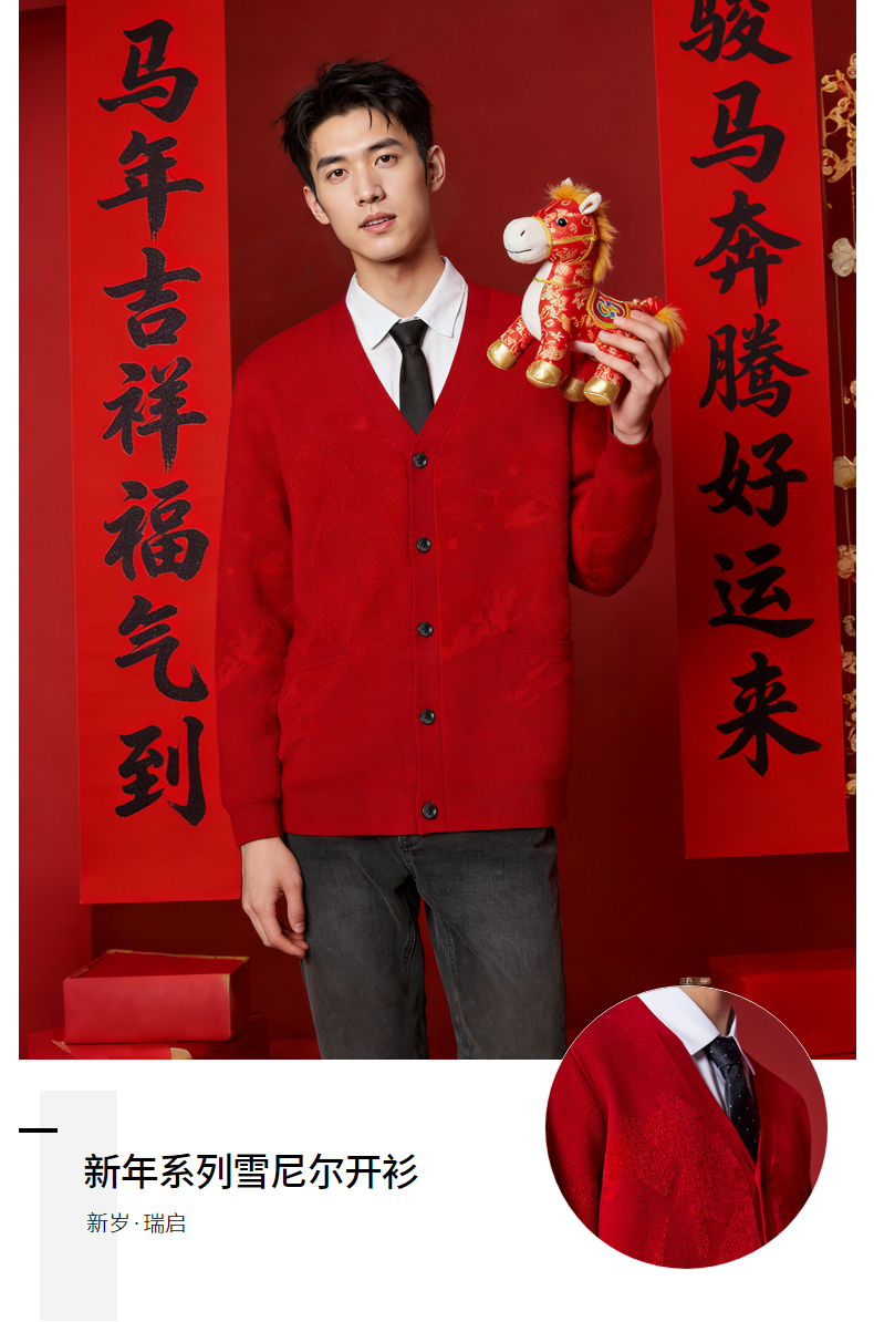 【新年系列】柒牌男装2026含羊毛雪尼尔保暖亲肤水墨开襟针织衫130Y70010