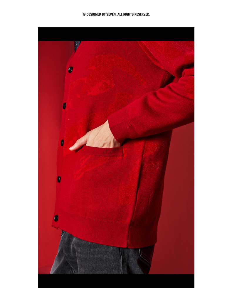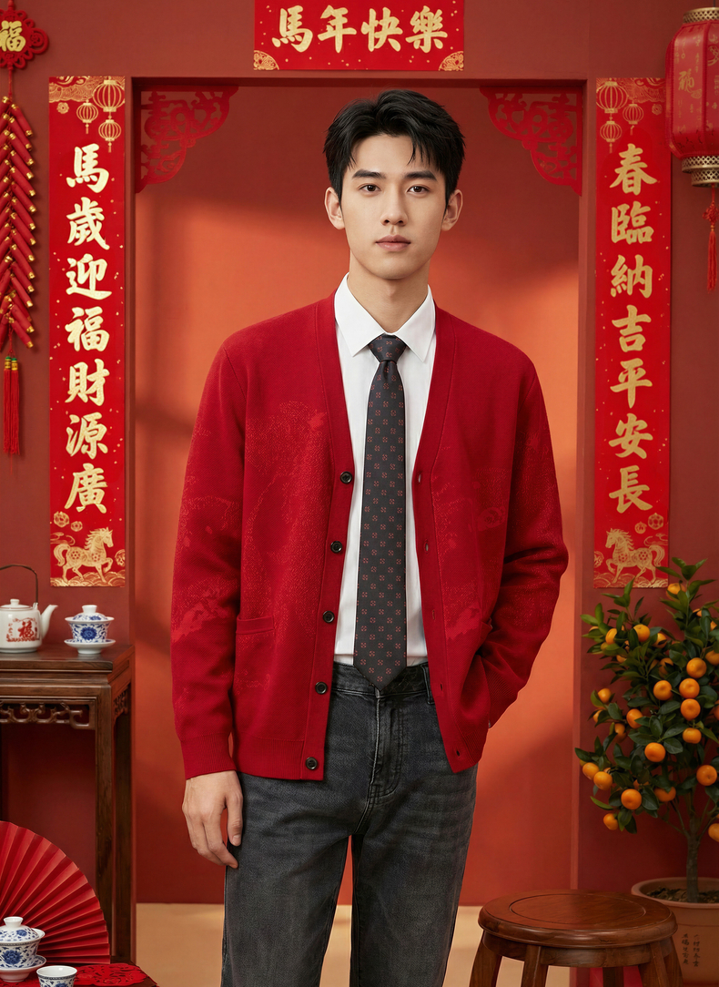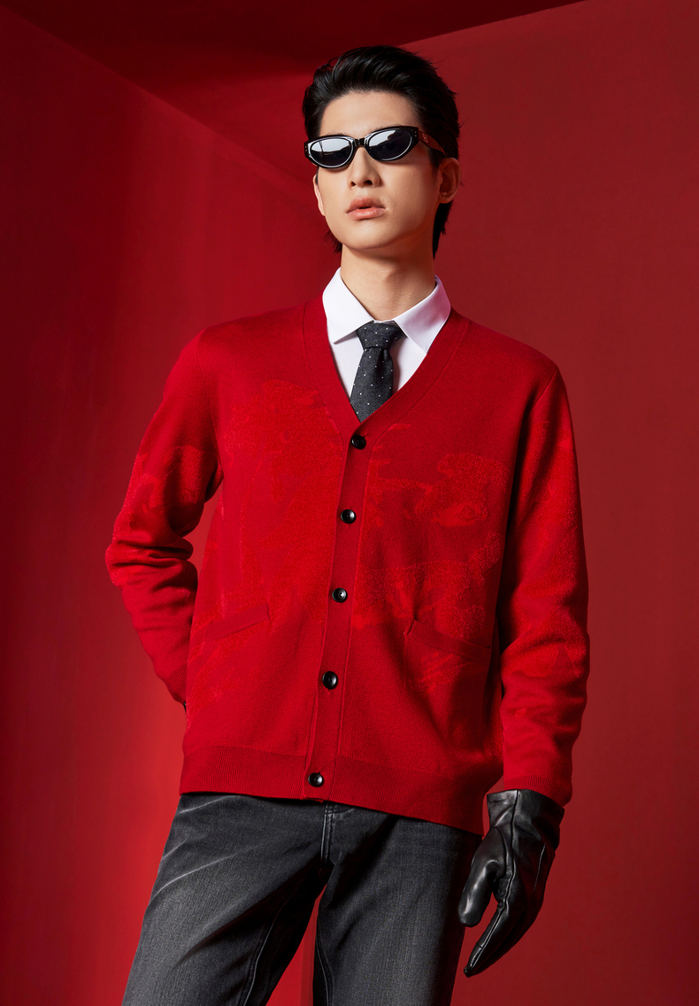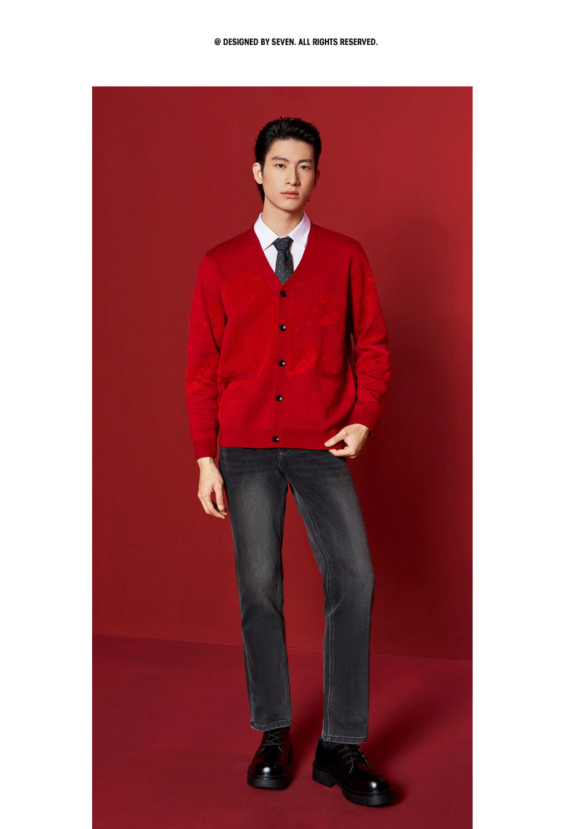 【新年系列】柒牌男装2026含羊毛雪尼尔保暖亲肤水墨开襟针织衫130Y70010