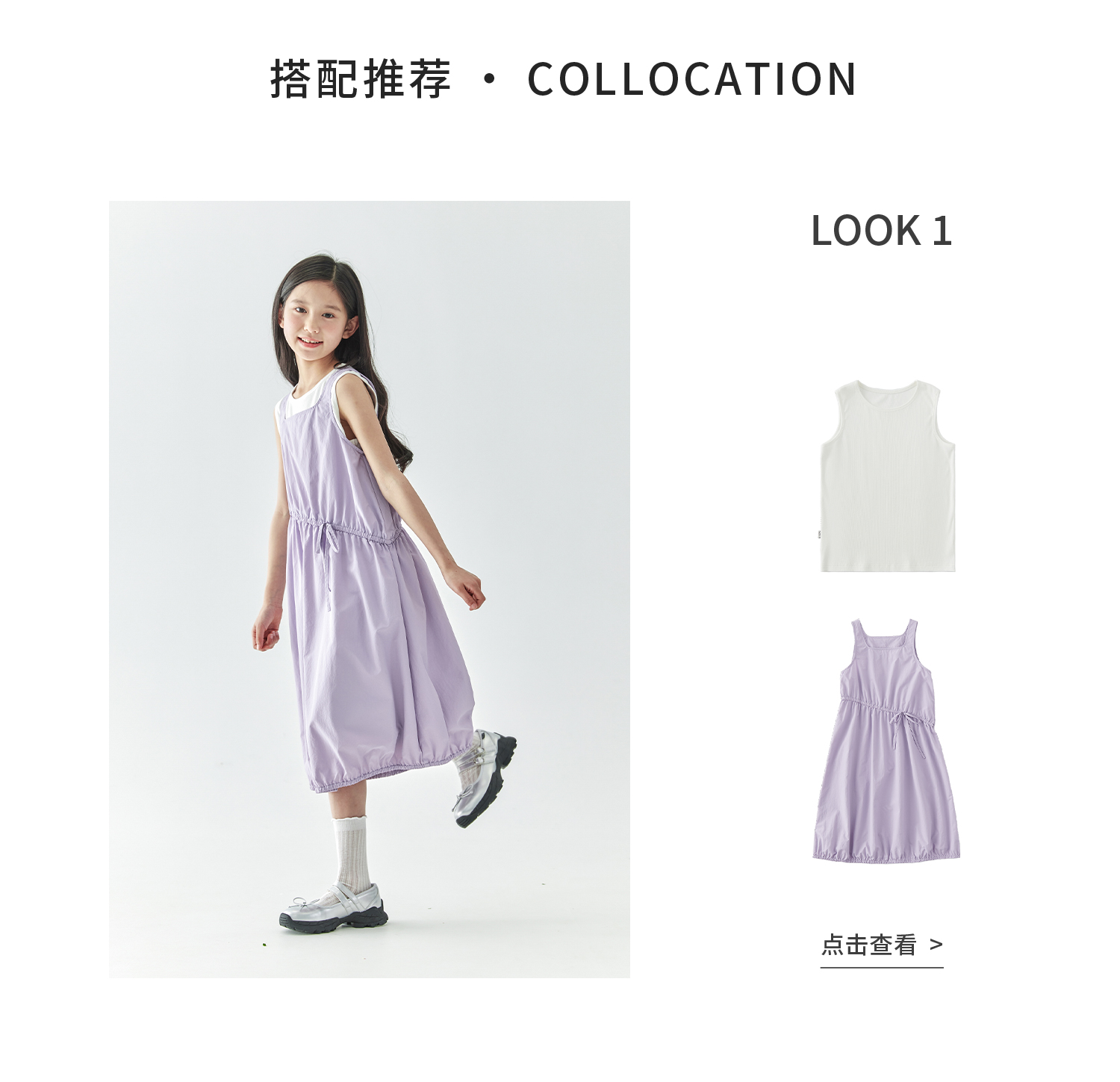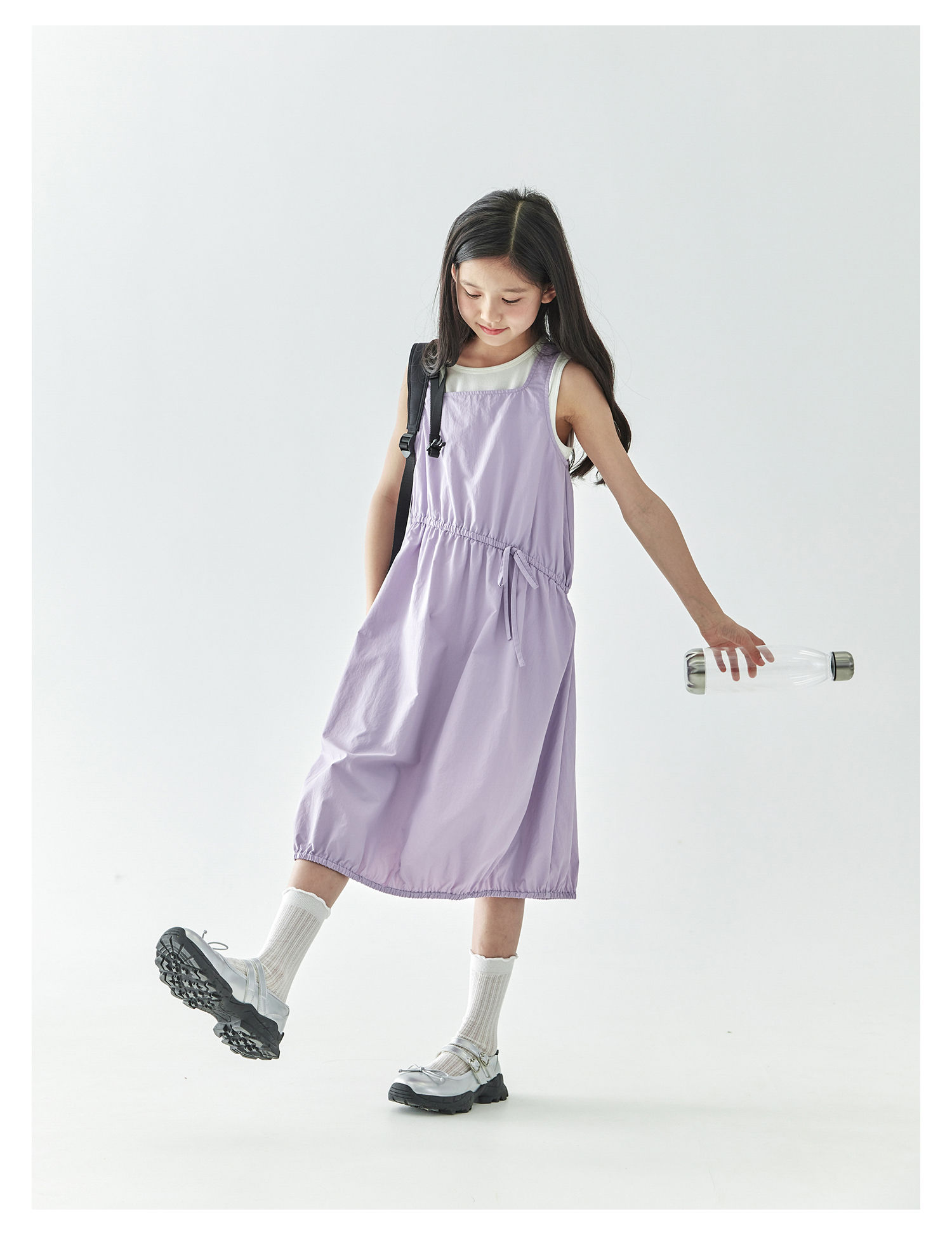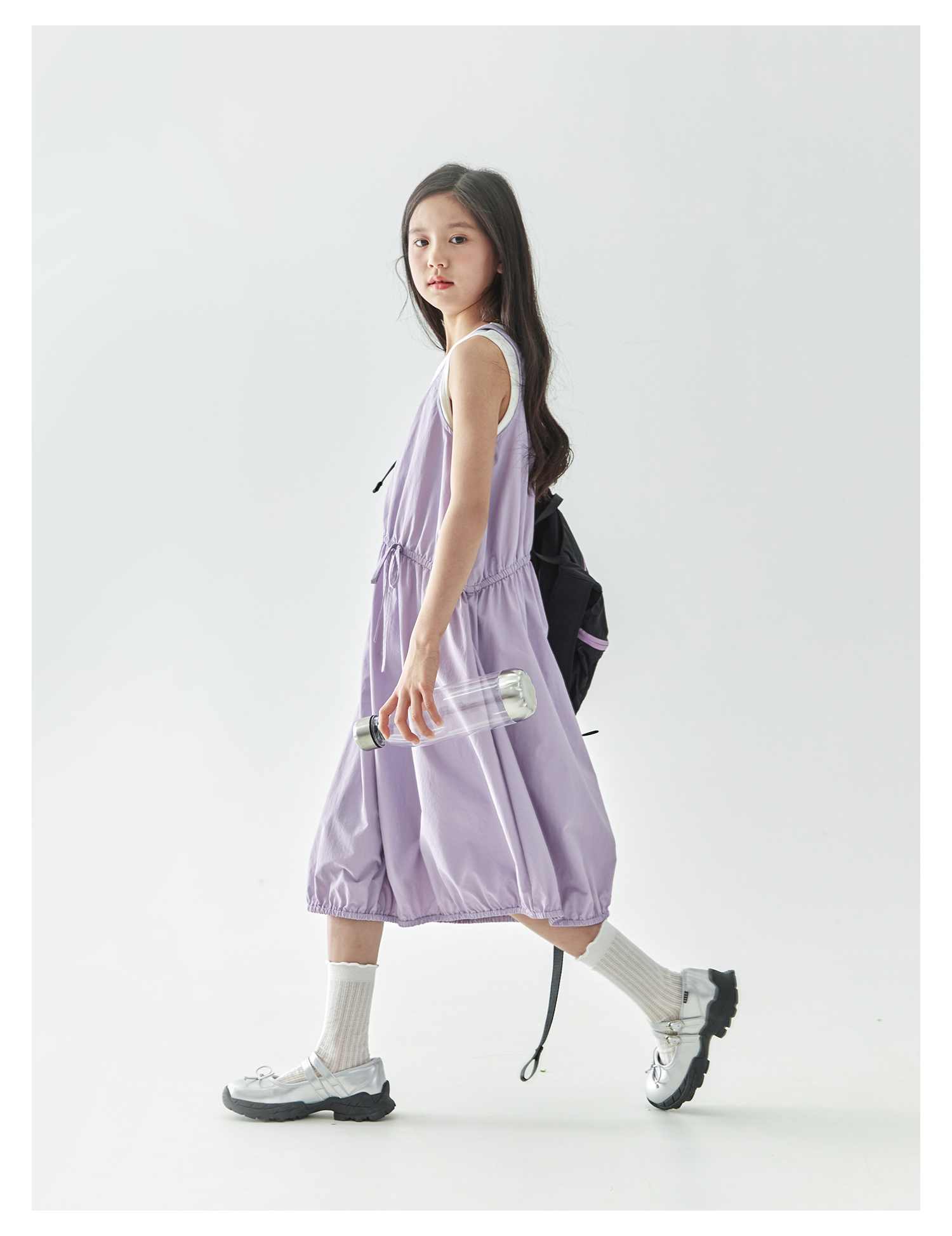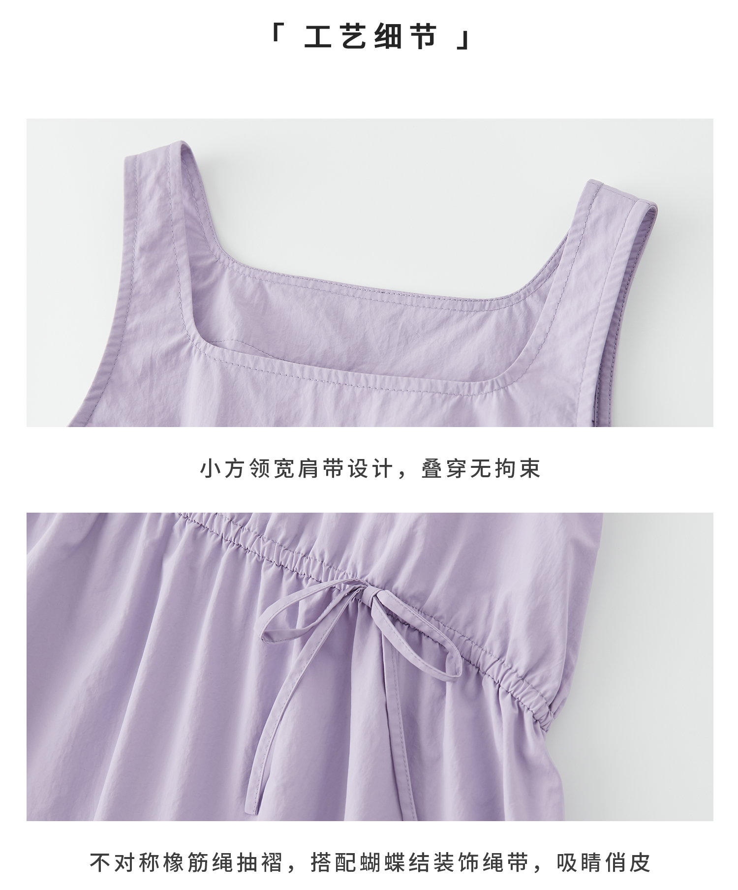 【代发】紫色尼龙连衣裙 棵初夏季款女童工装裙子不规则腰线纯色亲子花苞裙
