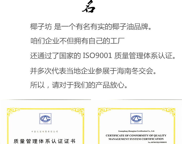 海南椰子油椰泽坊椰子油【400ML】玻璃瓶更安心