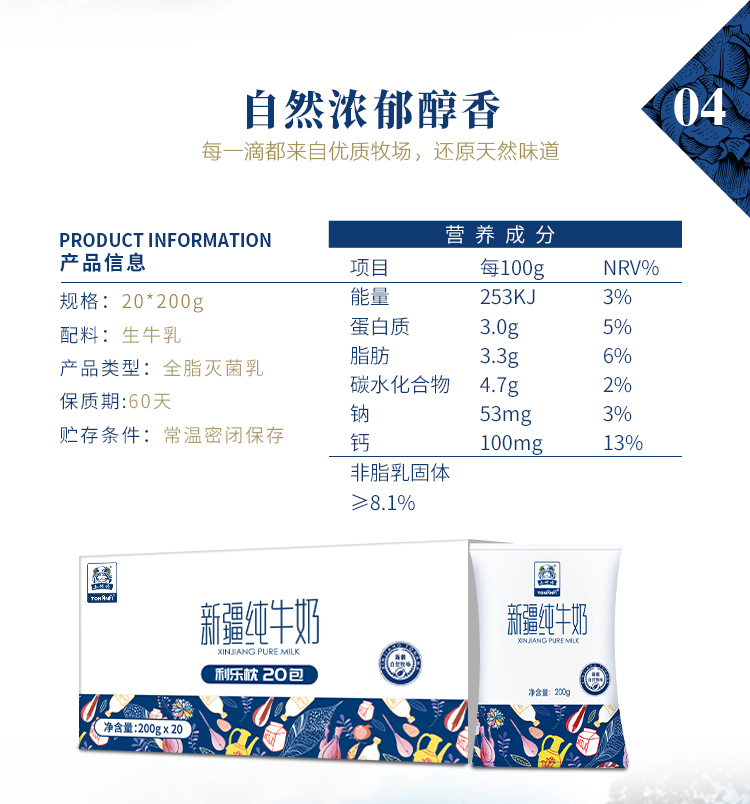 北纬43黄金奶源·新疆土姥姥纯牛奶(利乐枕) 品味清甜牛奶的味道