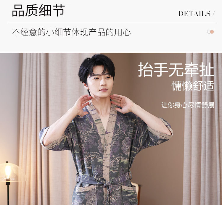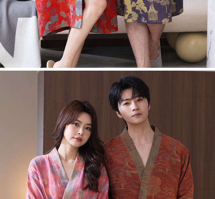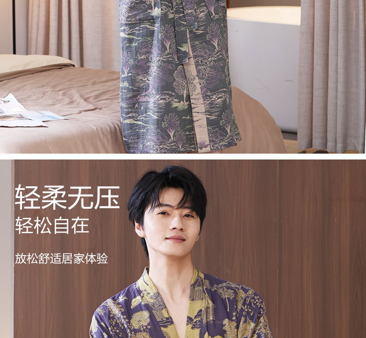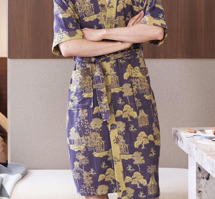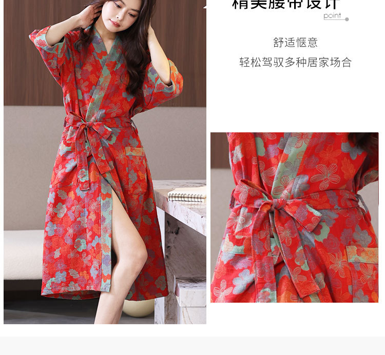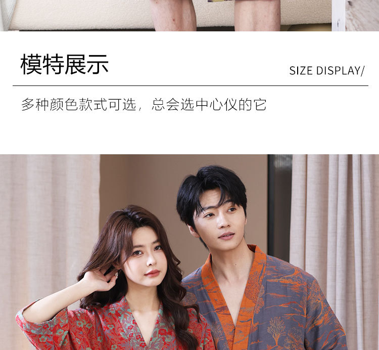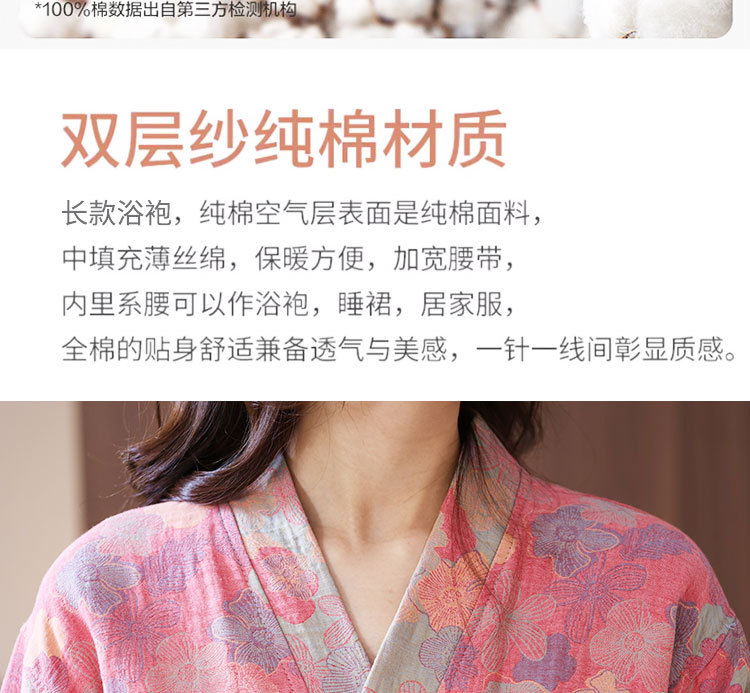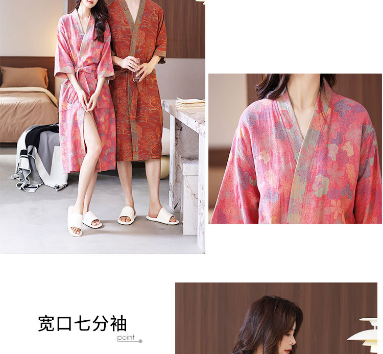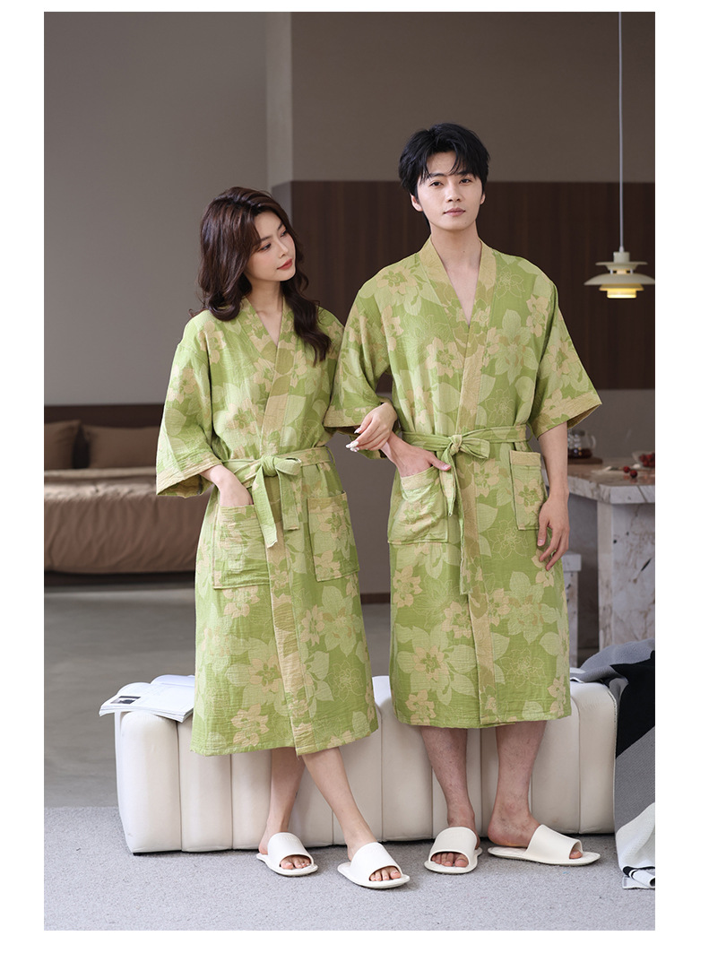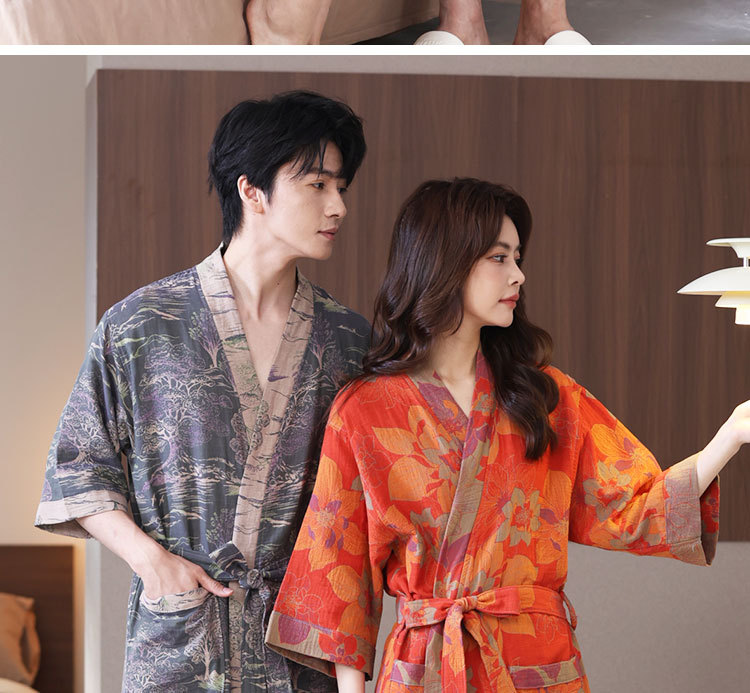 【优质天 然棉、双层纱越洗越柔软】a类春夏薄款睡衣纯棉双层纱布浴袍家居服睡袍情侣款吸水速 干浴衣.TA