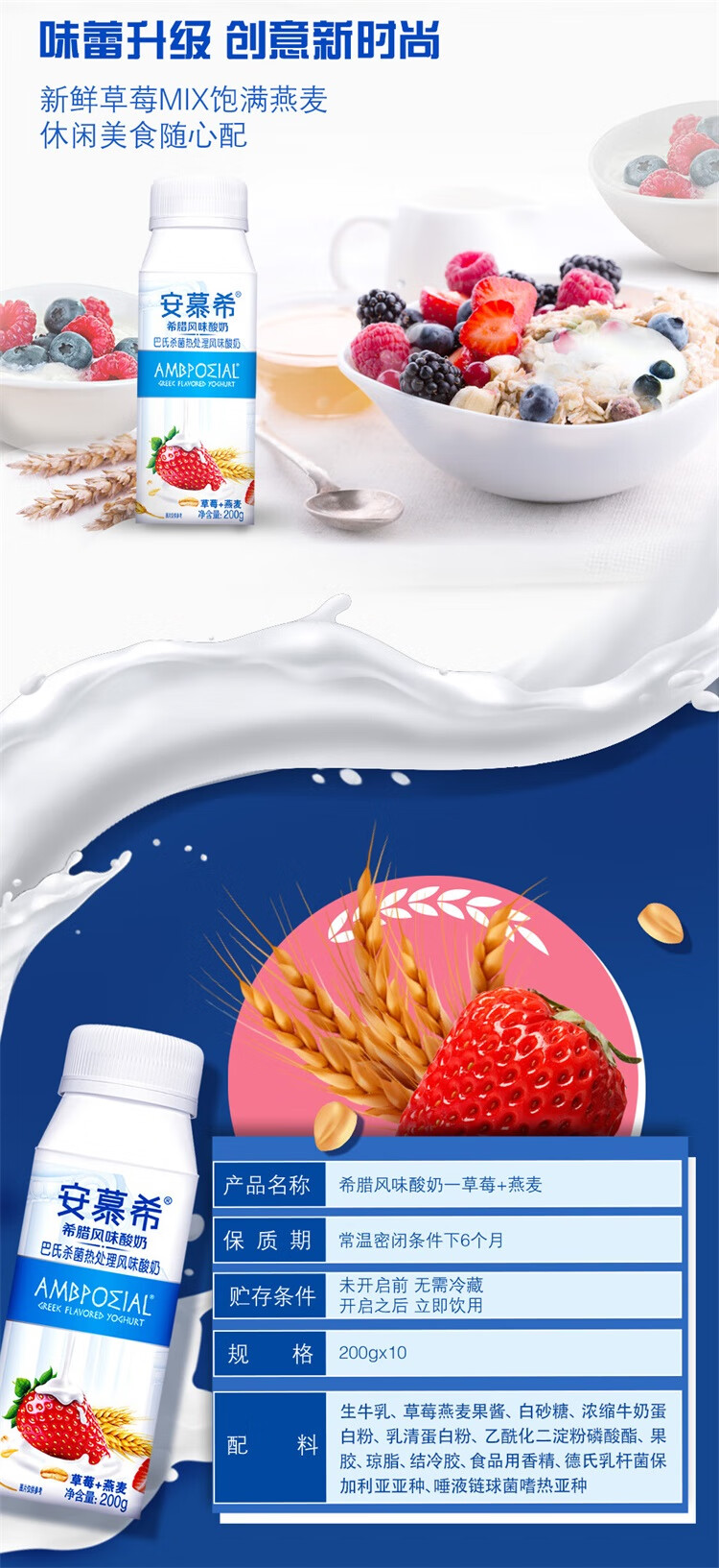 伊利安慕希草莓燕麦常温酸奶200g*10瓶