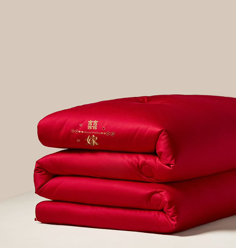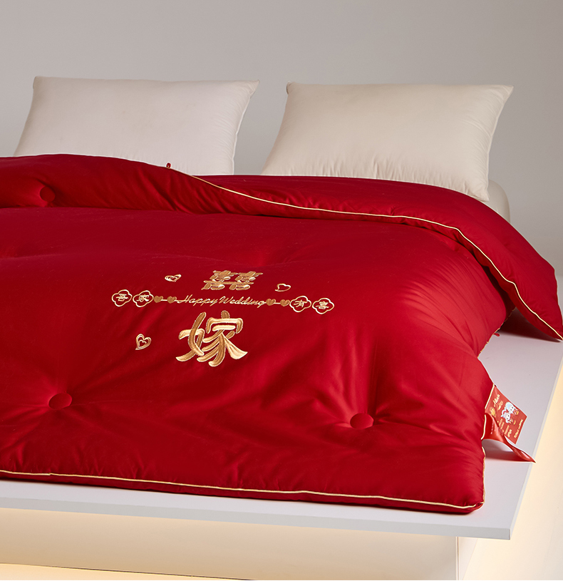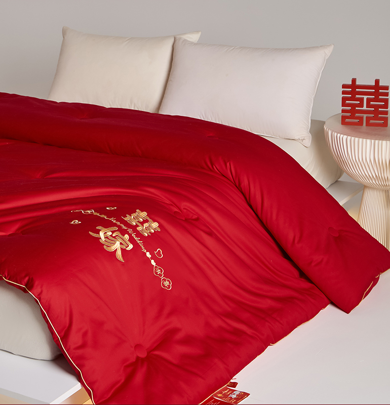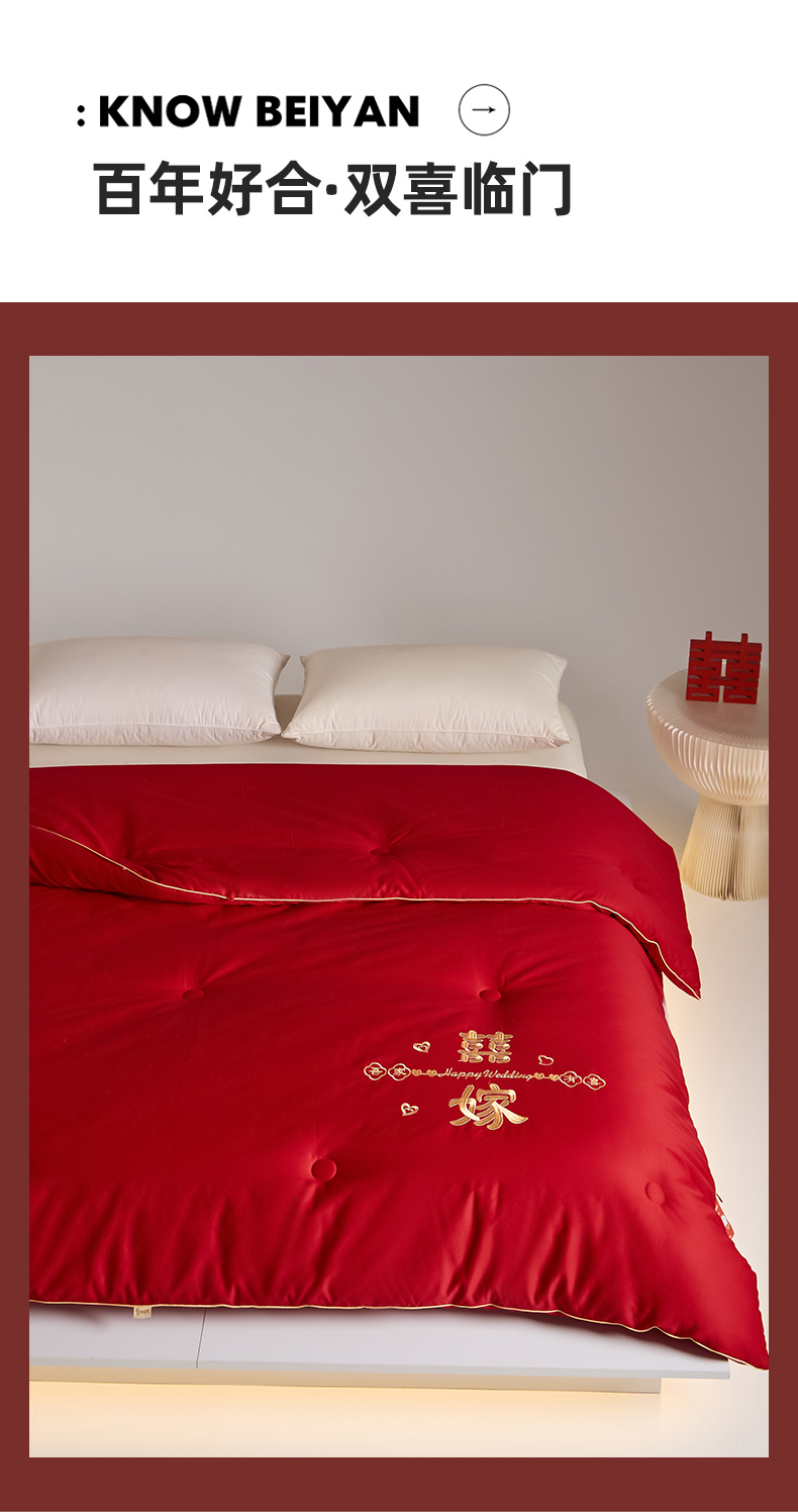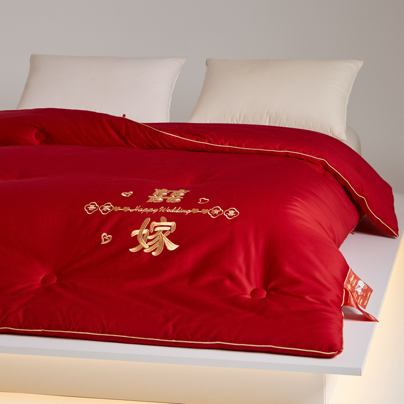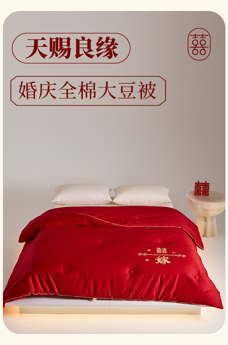 60支长绒棉婚嫁大豆被子全棉冬被加厚结婚陪嫁大红色新婚喜被春秋棉被芯