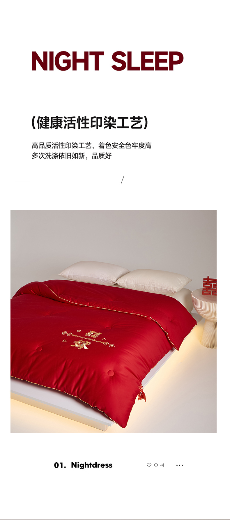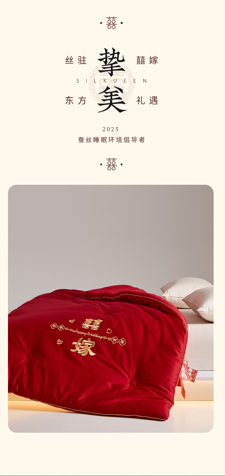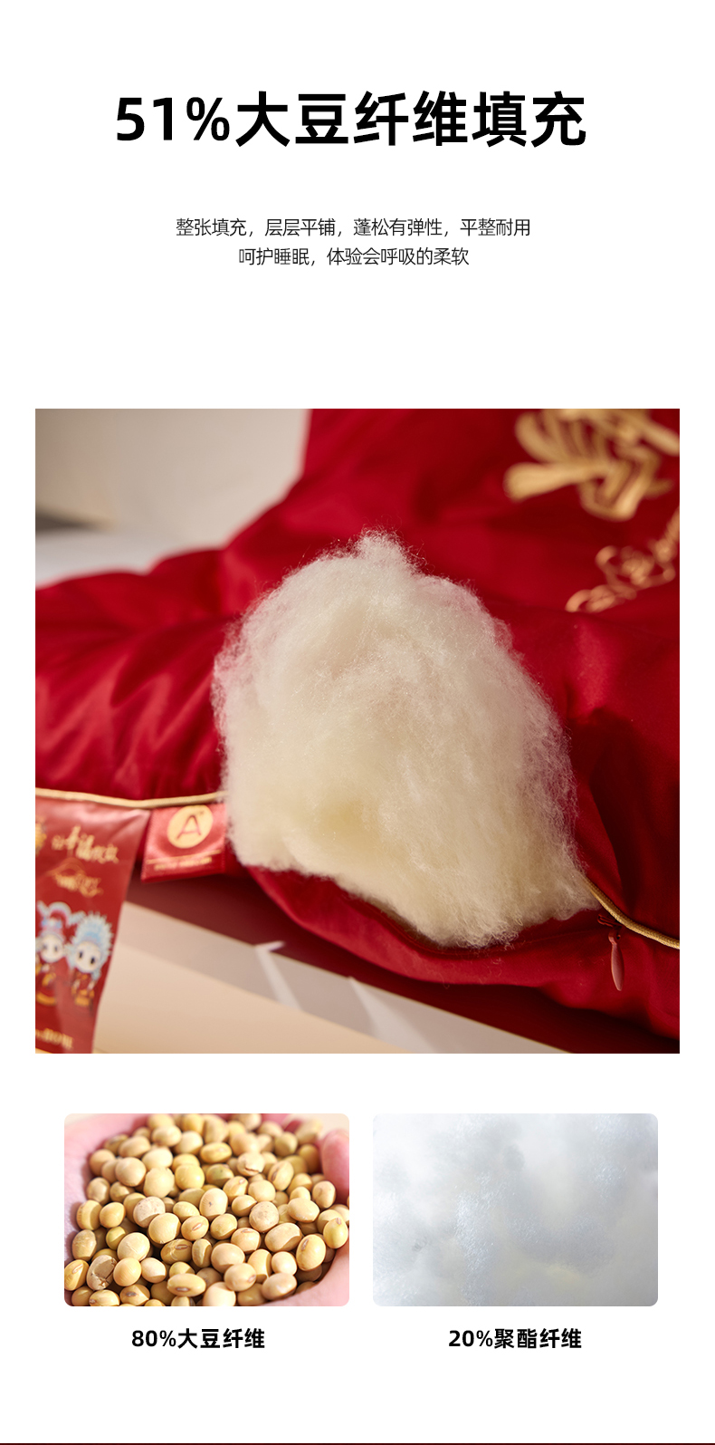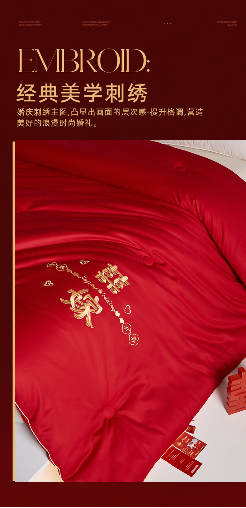 60支长绒棉婚嫁大豆被子全棉冬被加厚结婚陪嫁大红色新婚喜被春秋棉被芯