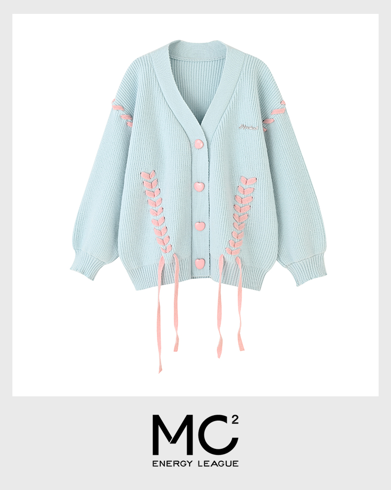 撞色绑带毛衣开衫M4232526