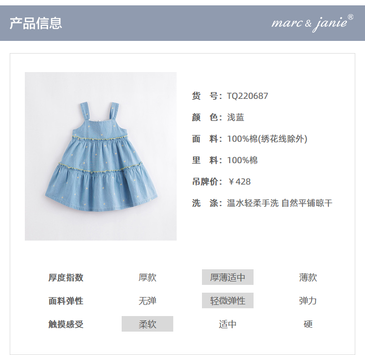 马克珍妮夏装新款 女童大A版刺绣牛仔吊带裙220687