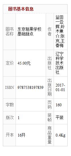| 适读人群 :烘焙爱好者 东京制果学校建校60年以来,积累了大量制作甜品的经验和技巧。本书是由各位教员共同编写的一本食谱。在日常授课中,本校教员倾向于让学生按照本书基础配方,反复进行大量的练习,力求把食谱中蕴含的技巧与道理铭刻在学生的信念中。本书中介绍的都是*基本的甜品款式。 n为了能让从未接触过甜品制作的新手读者也能如愿做出理想的甜点,本书中特意附加了大量实际操作图。希望能够加深各位的理解。也许有读者认为“制作甜品难于上青天”,但其实只要掌握了技巧、抓住了要点,也并非难事。 n虽说是*基础的甜点与巧克力,也请大家反复尝试制作吧。在反复尝试的过程中,甜点也好、巧克力也罢,会成为“你自己的甜品”。 n甜品能够丰富我们的生活,愉悦我们的心灵。希望通过本书,大家可以享受到甜品制作的乐趣。如果大家能够按照书中配方制作出美味甜点,我们也会感到由衷的快乐。 n |