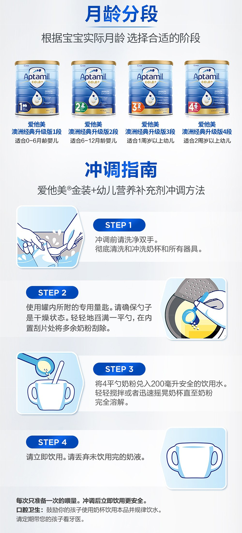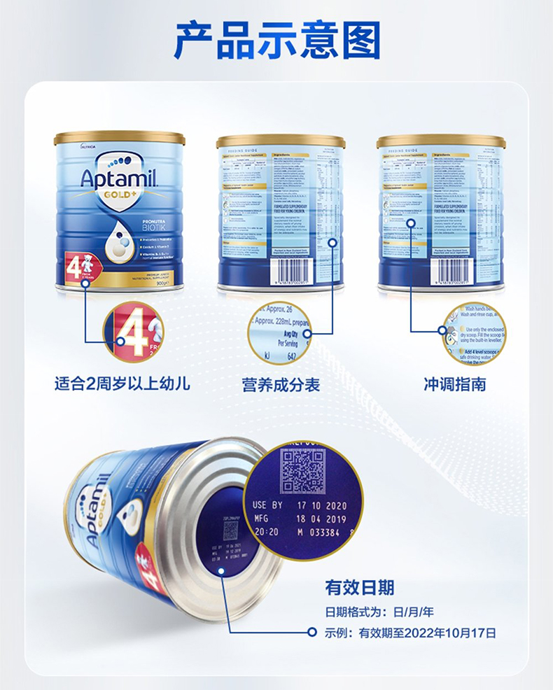 3罐【保税】澳洲爱他美Aptamil金装 4段 900g(新包装)