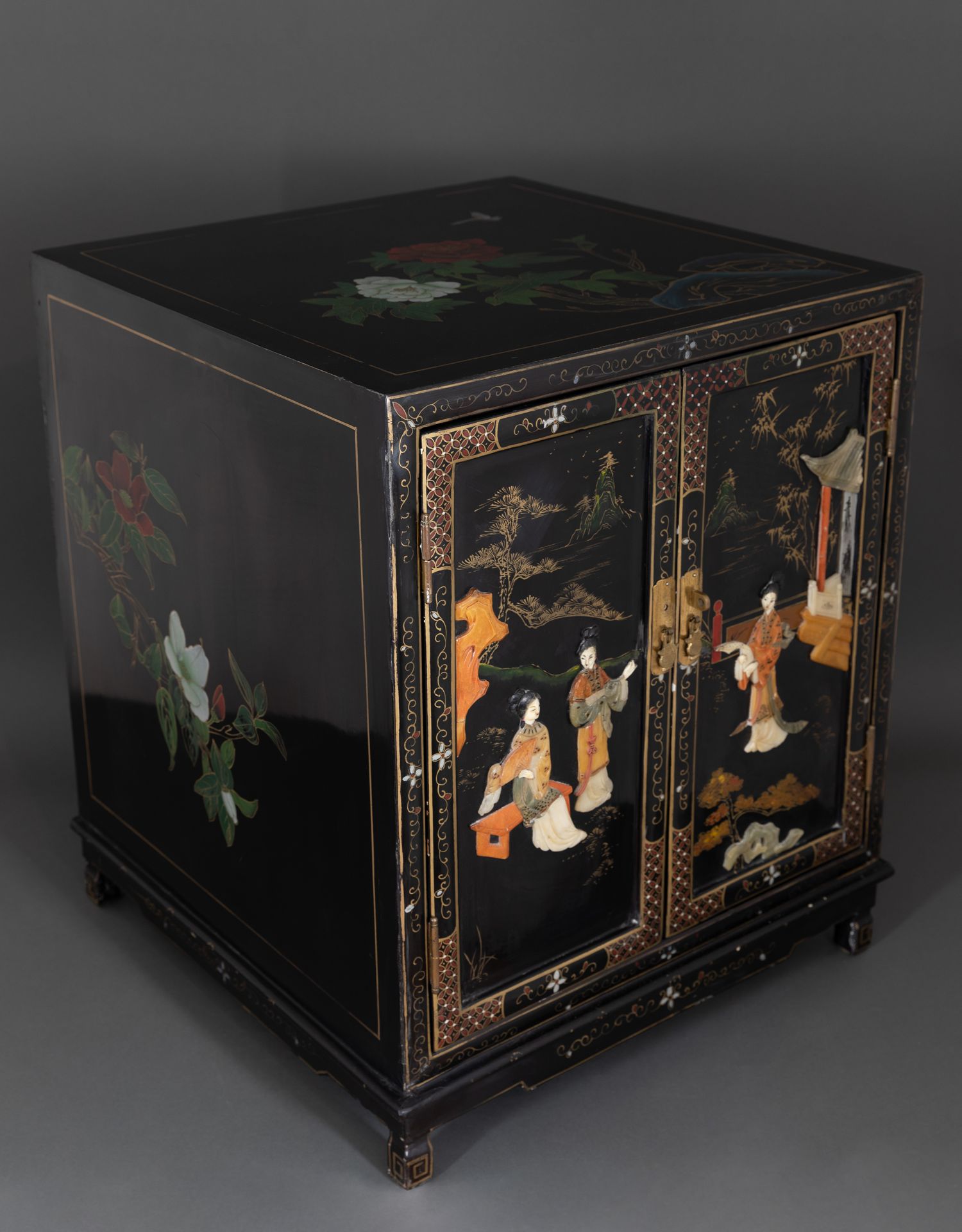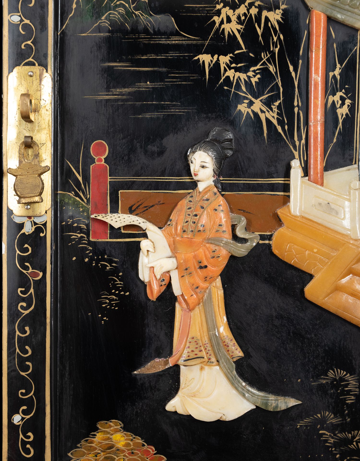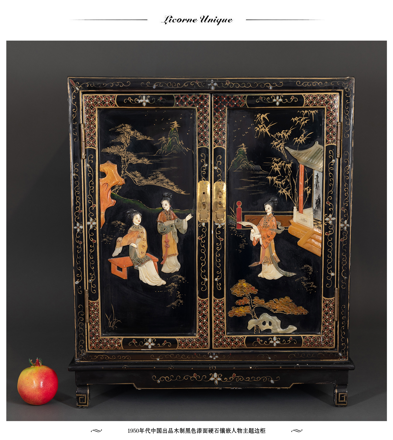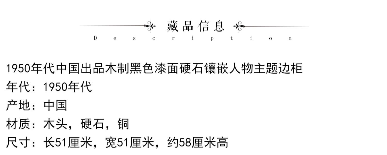 独角鹿西洋古董家具国木制黑色漆面硬石镶嵌人物主题边柜柜子立柜