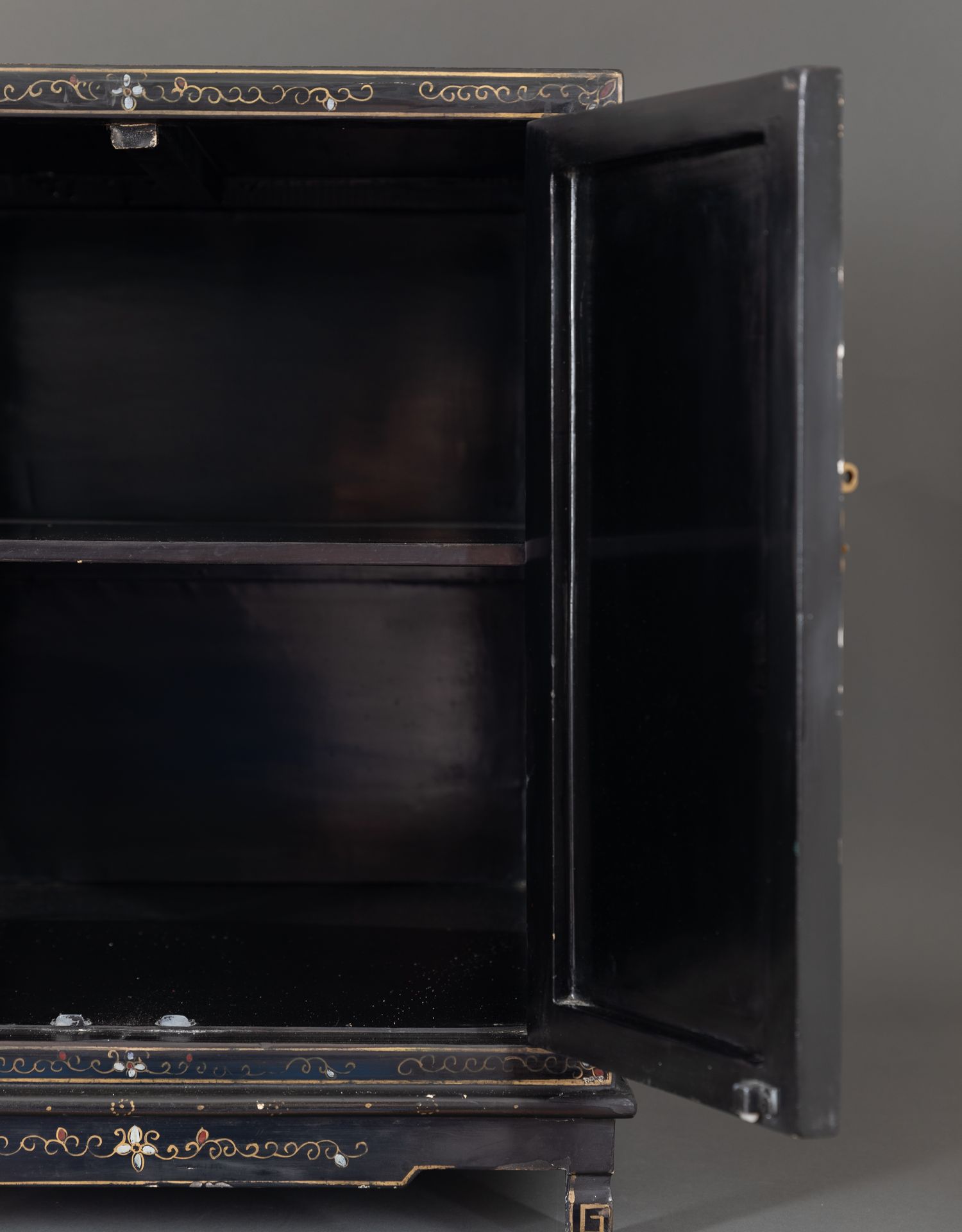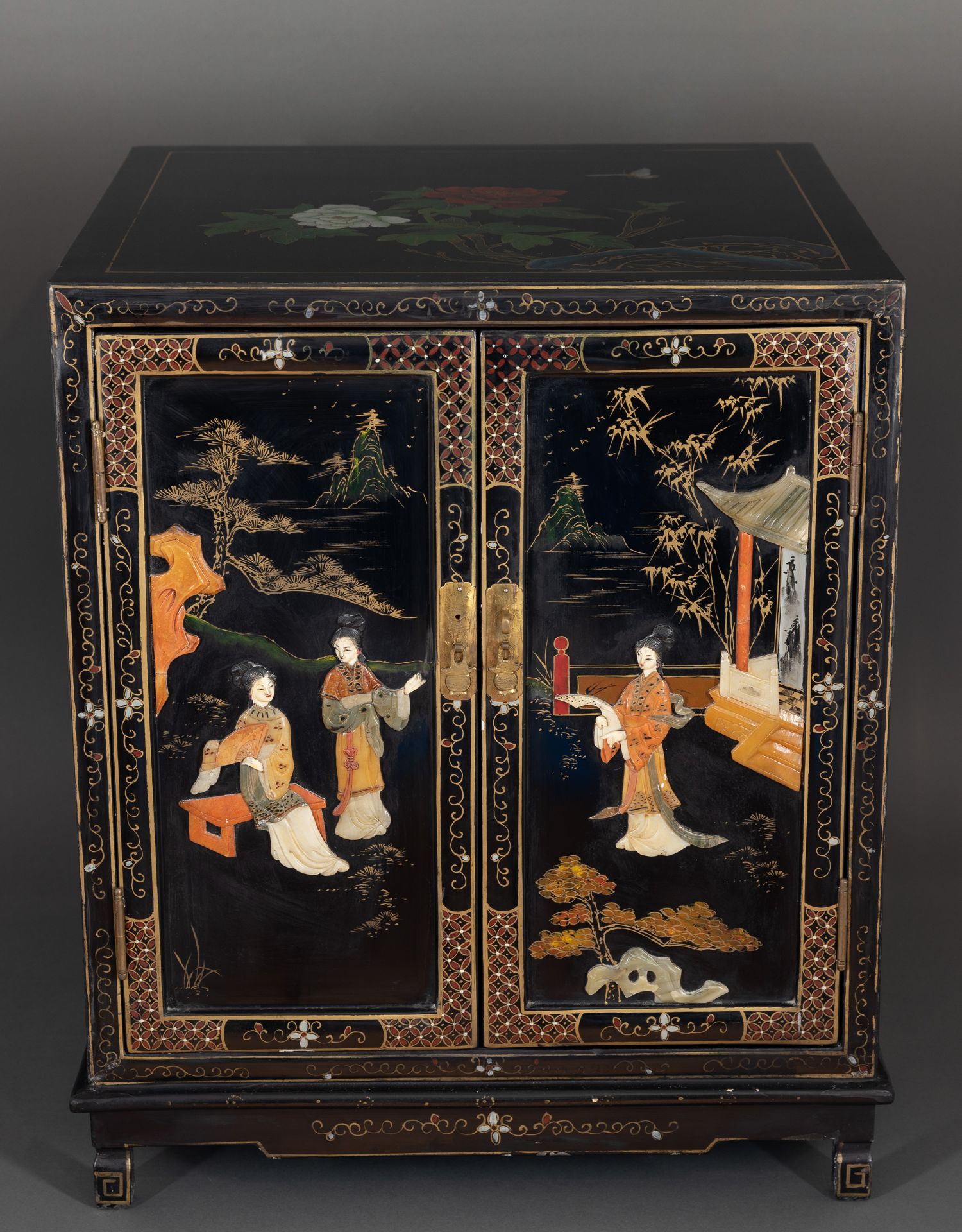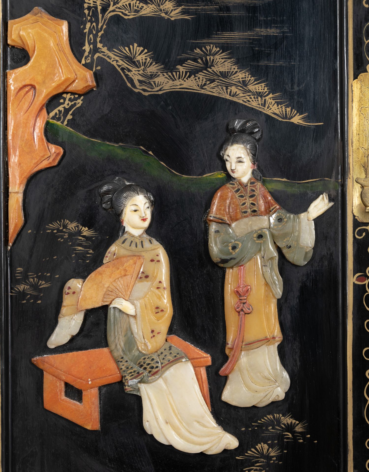 独角鹿西洋古董家具国木制黑色漆面硬石镶嵌人物主题边柜柜子立柜
