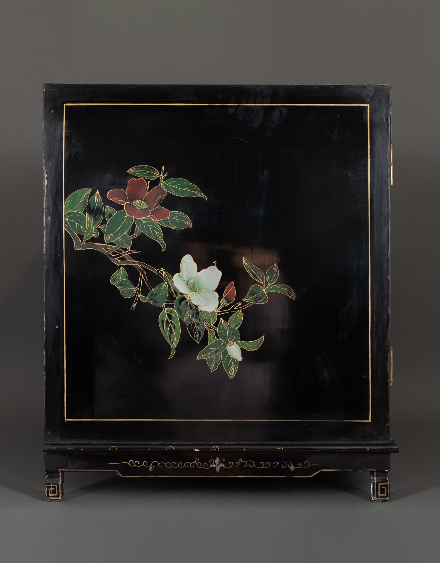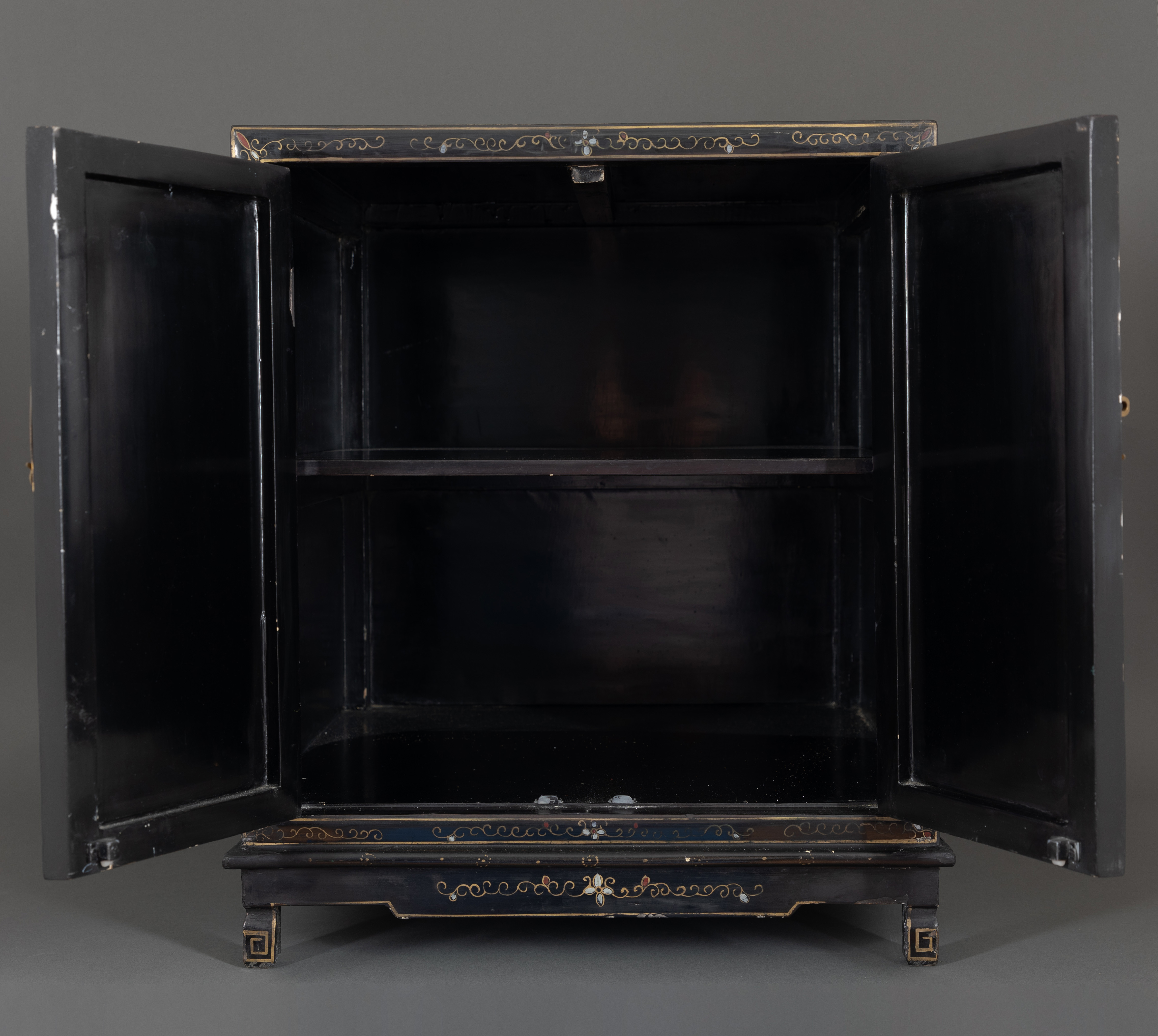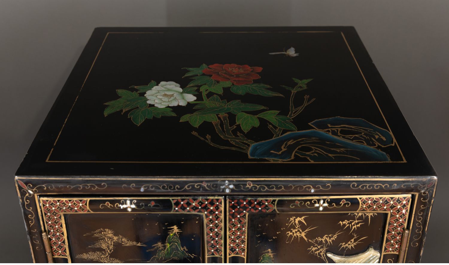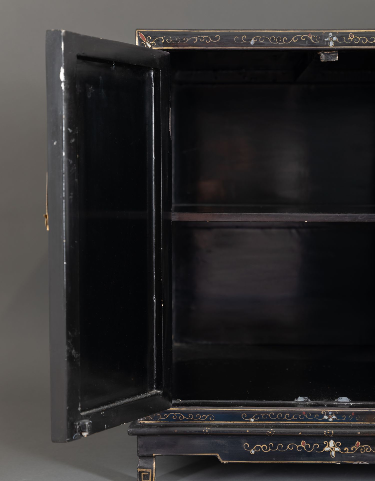 独角鹿西洋古董家具国木制黑色漆面硬石镶嵌人物主题边柜柜子立柜