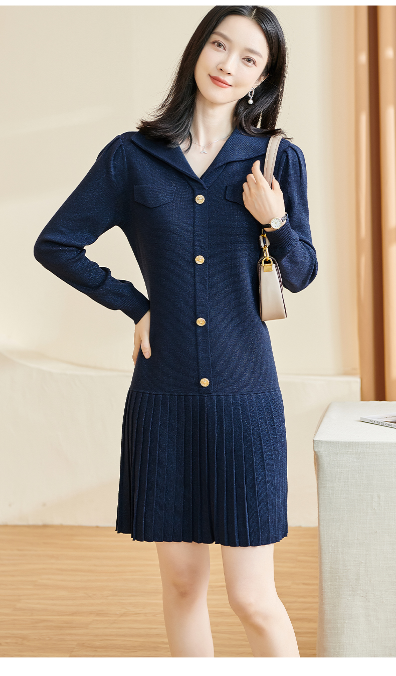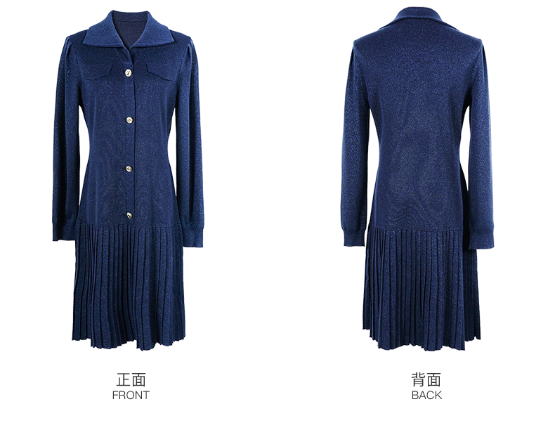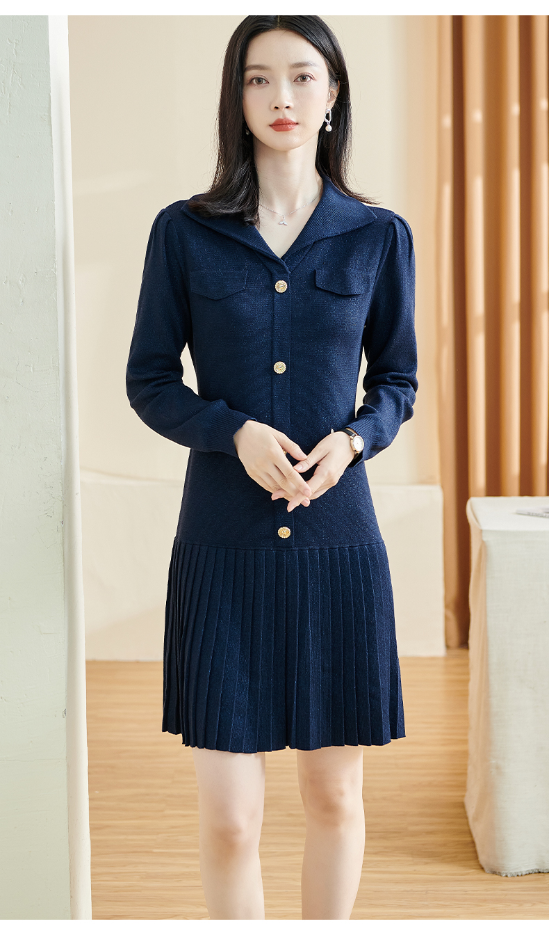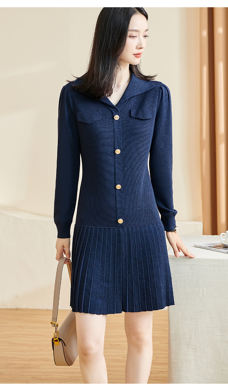 剩S/M 米思阳2025秋冬季新款时尚设计感藏蓝色连衣裙亮丝减龄百褶裙子3086