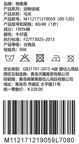 棉果果春秋季男童马夹M112171219059