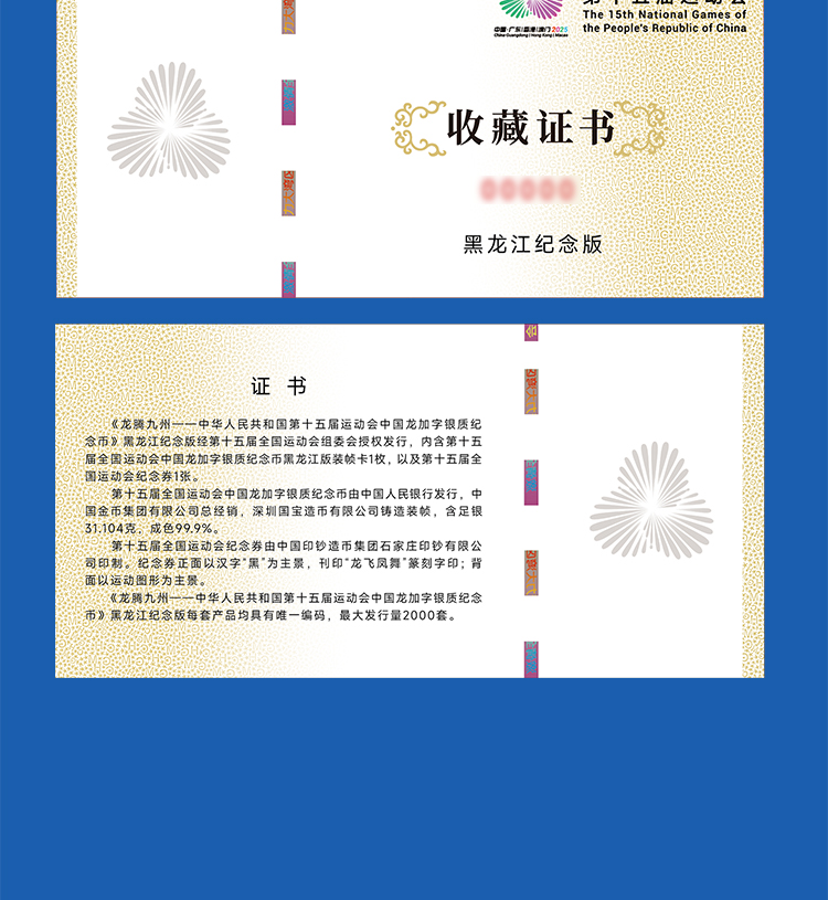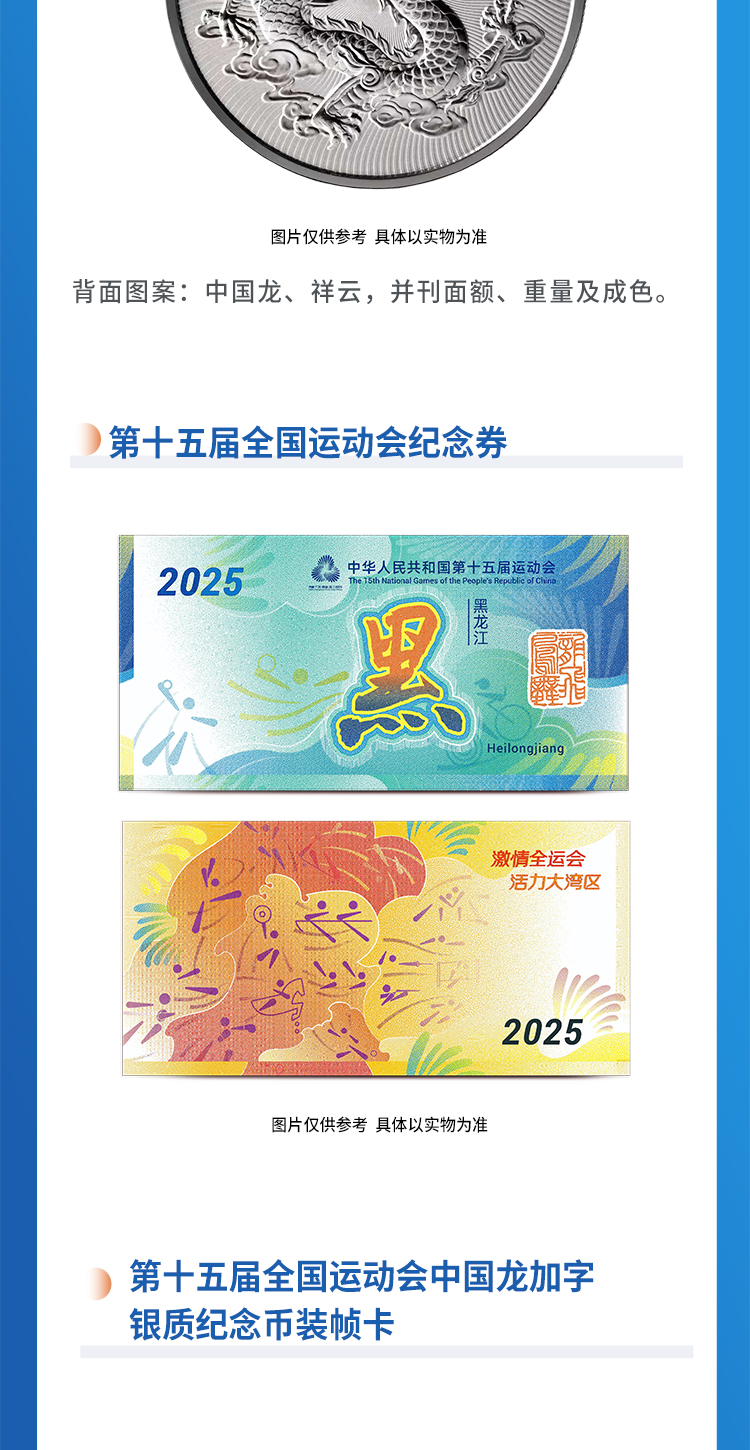 第十五届运动会中国龙加字银币黑龙江(黑)一币一券官方正品