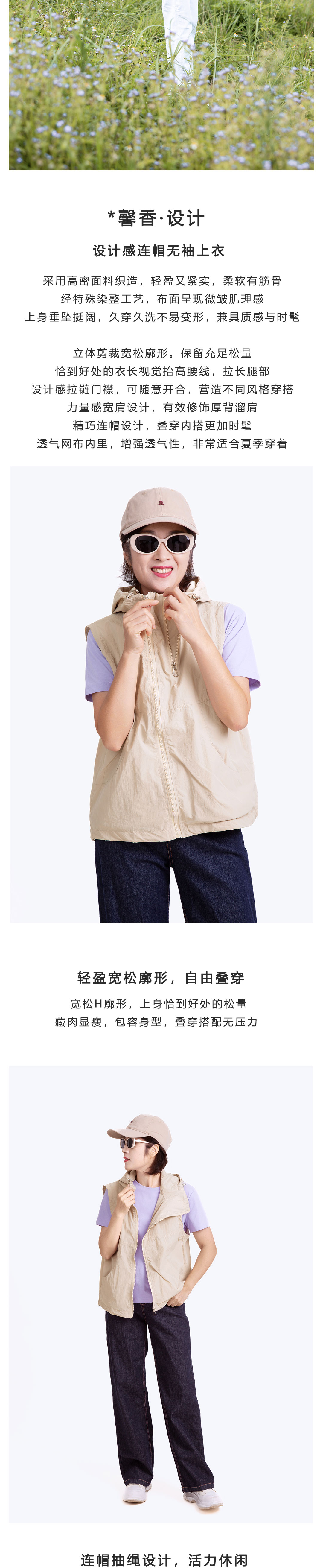 设计感连帽无袖上衣