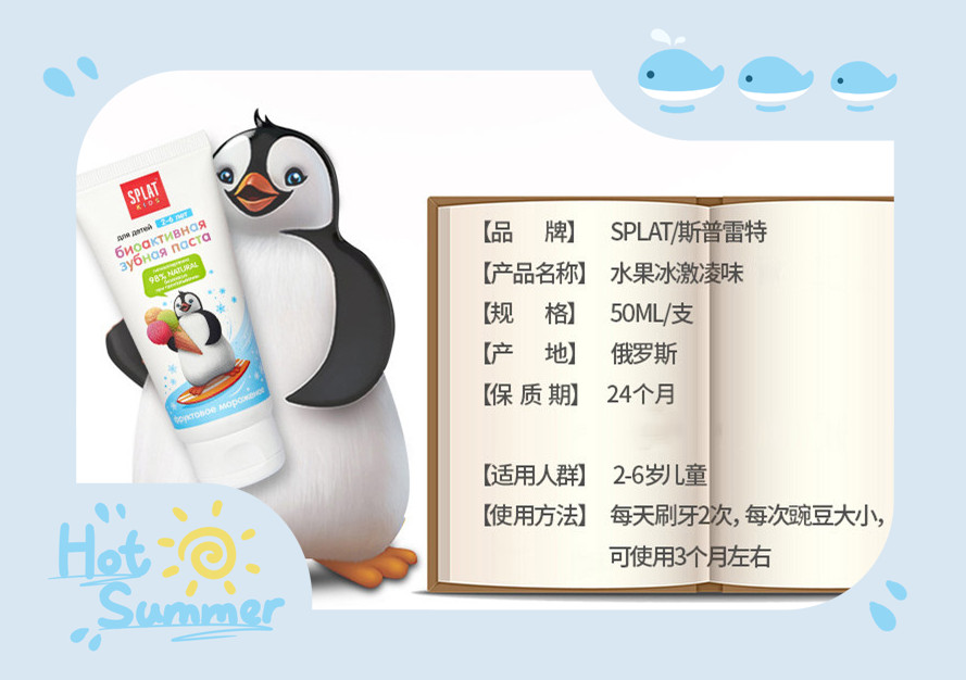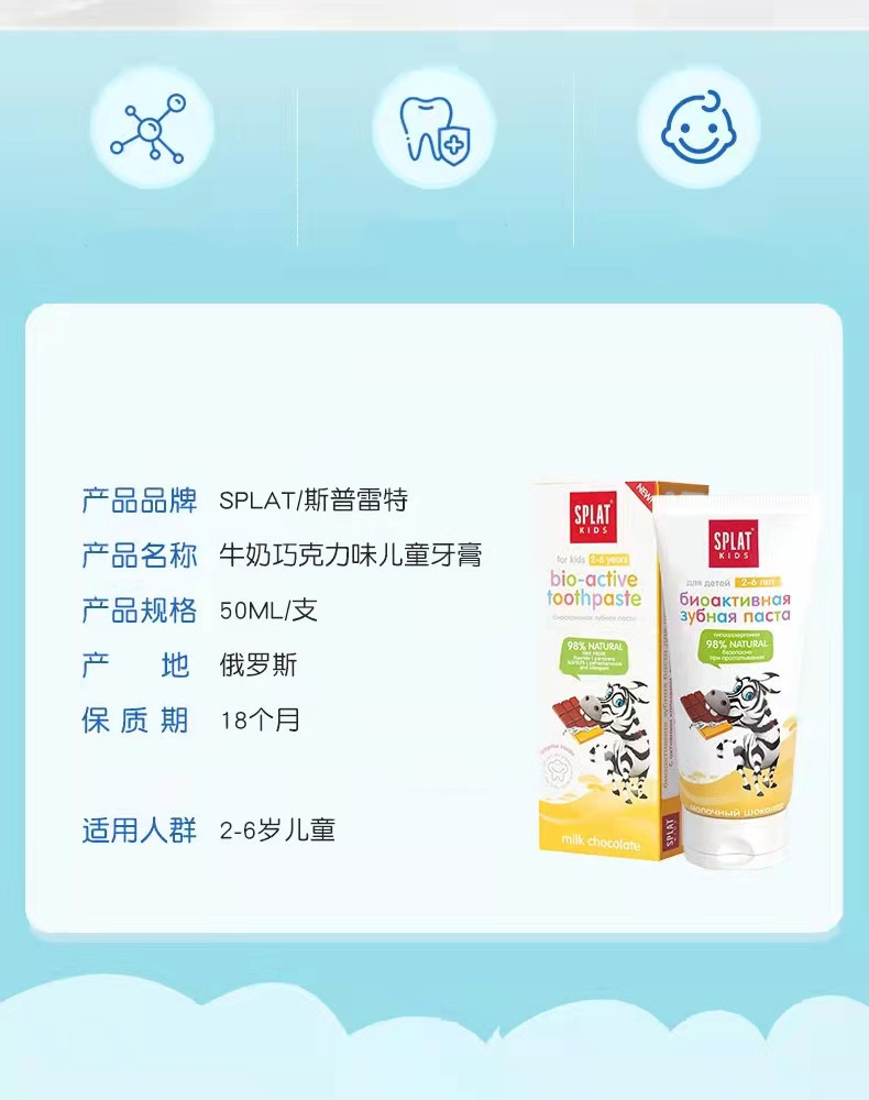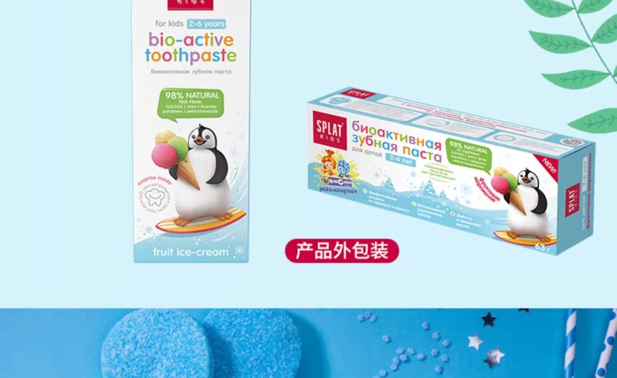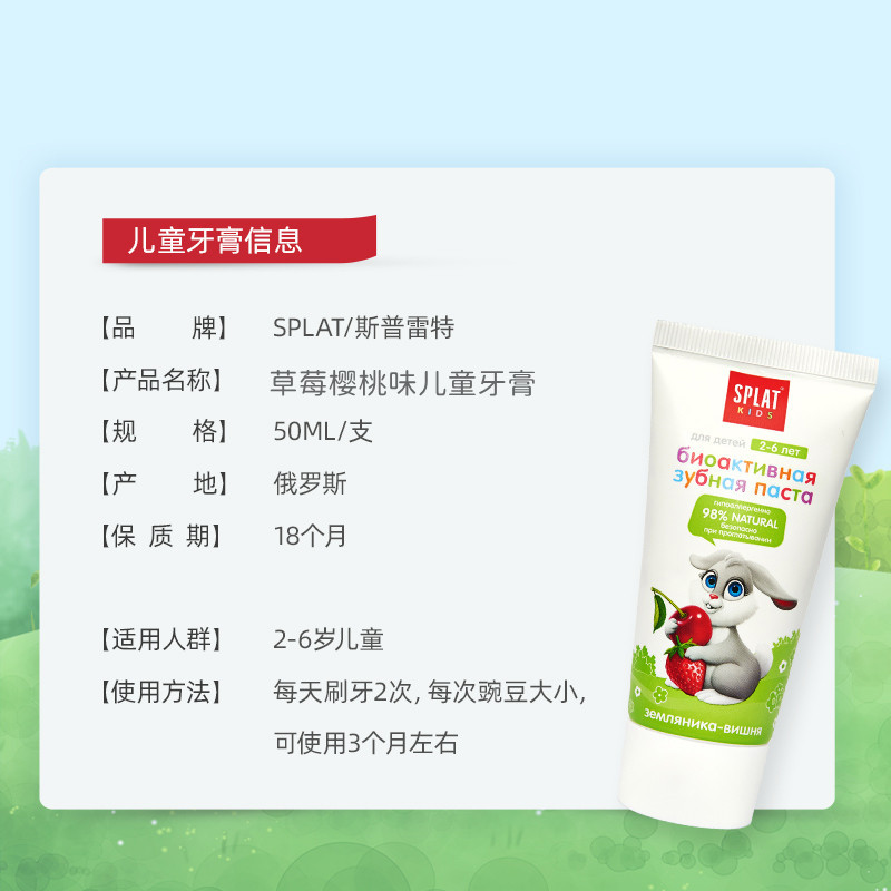 俄罗斯SPLAT斯普雷特儿童无氟牙膏樱桃冰淇淋味2-6岁防蛀牙