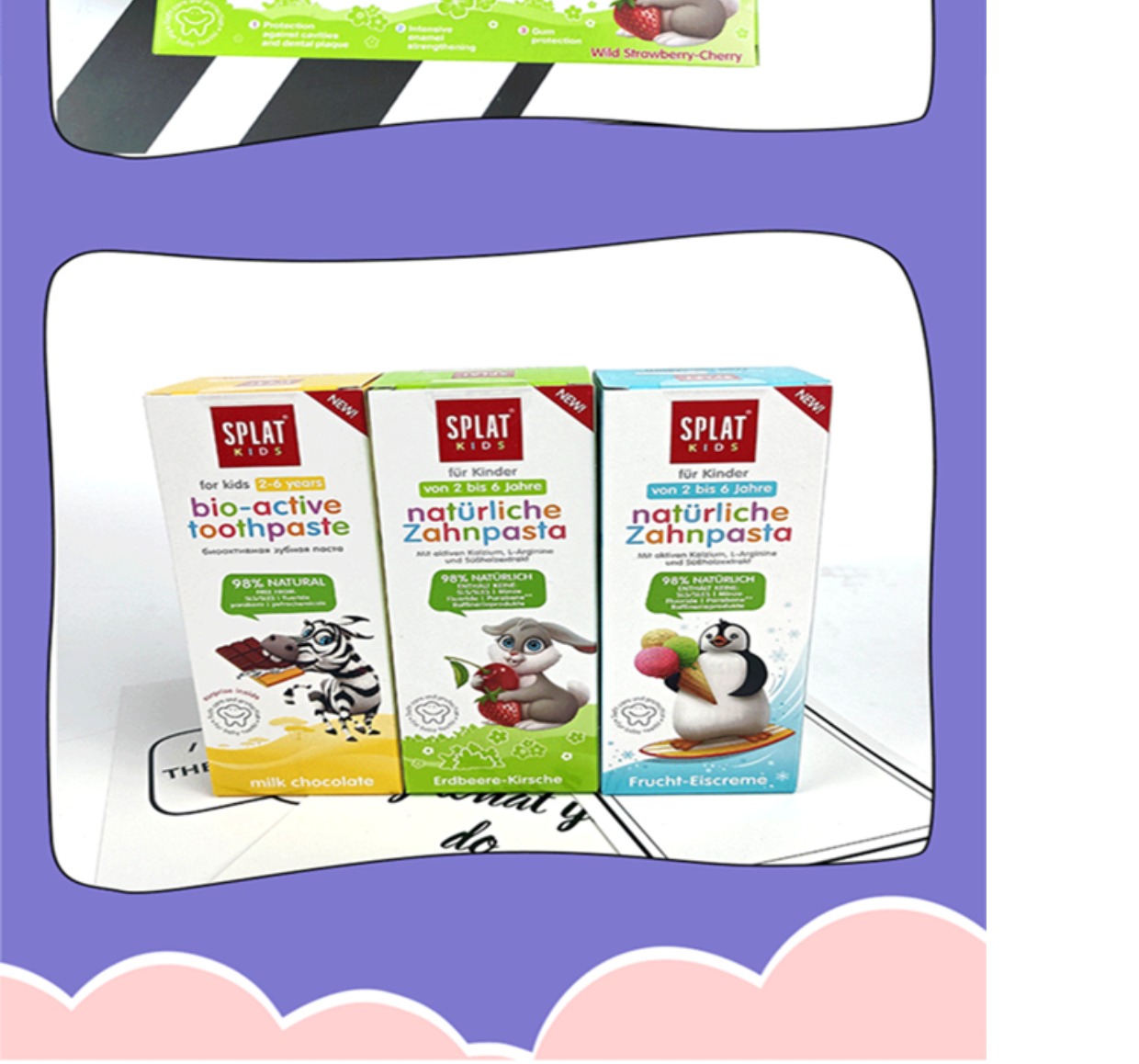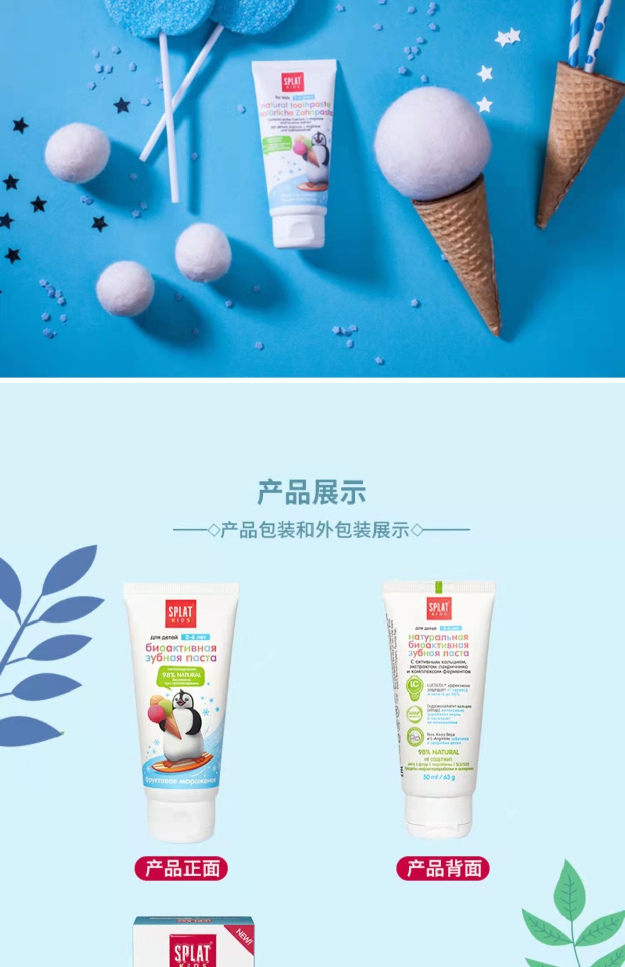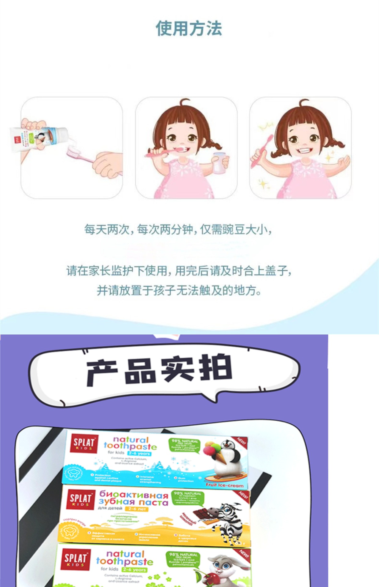 俄罗斯SPLAT斯普雷特儿童无氟牙膏樱桃冰淇淋味2-6岁防蛀牙