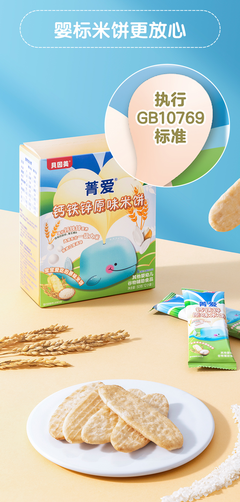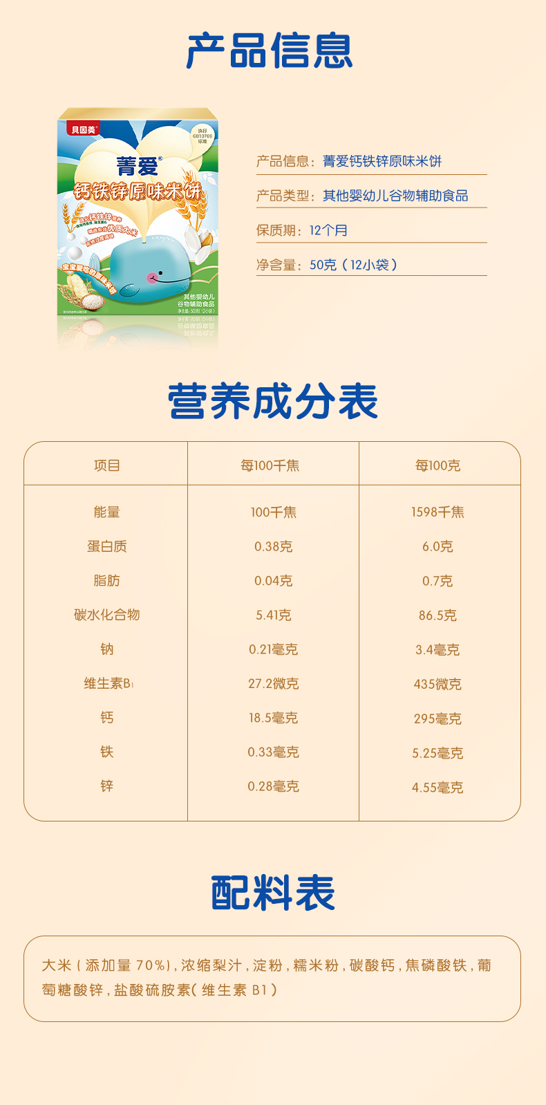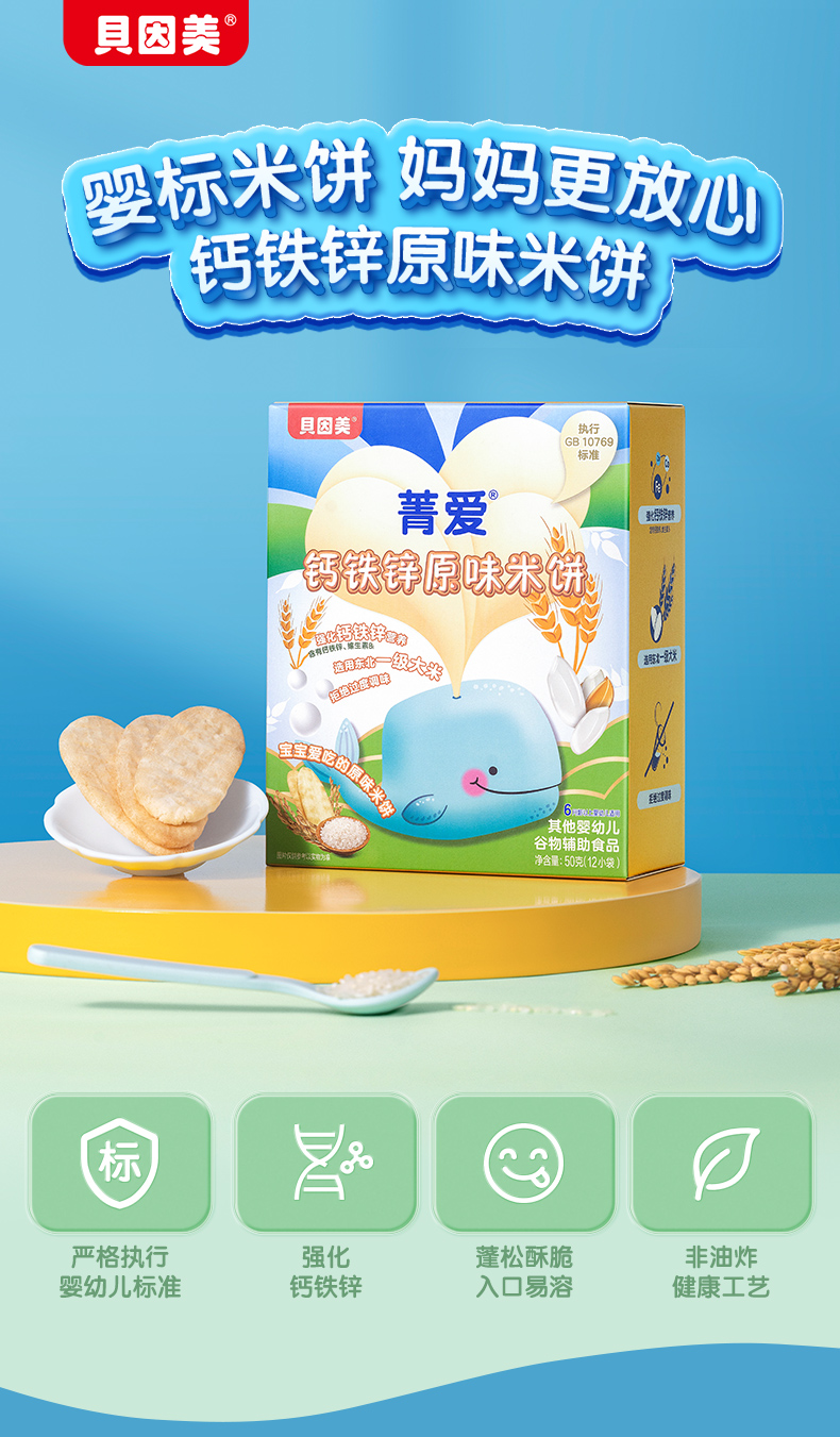 贝因美菁爱铁锌钙原味米饼*3盒