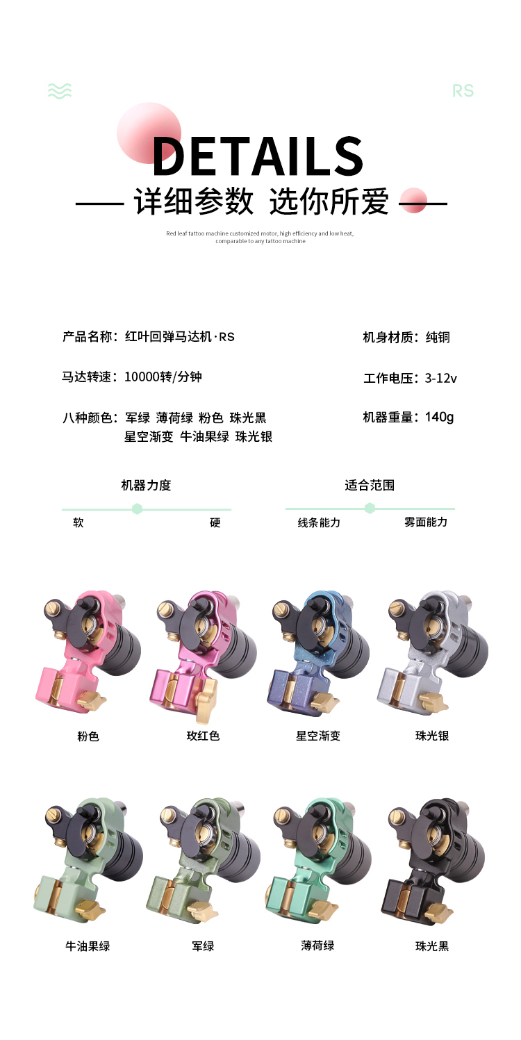 红叶RS 真正下回弹直驱马达机 割线打雾一体 惊蛰纹身器材
