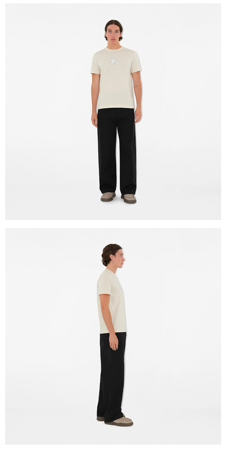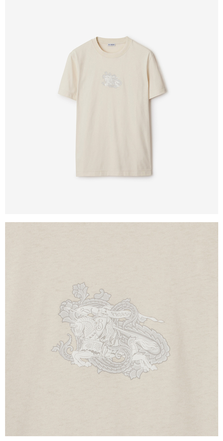 【一】BURBERRY 巴宝莉 男士佩斯利马术骑士徽标刺绣棉质圆领短袖T恤 米色 8097879 C1409