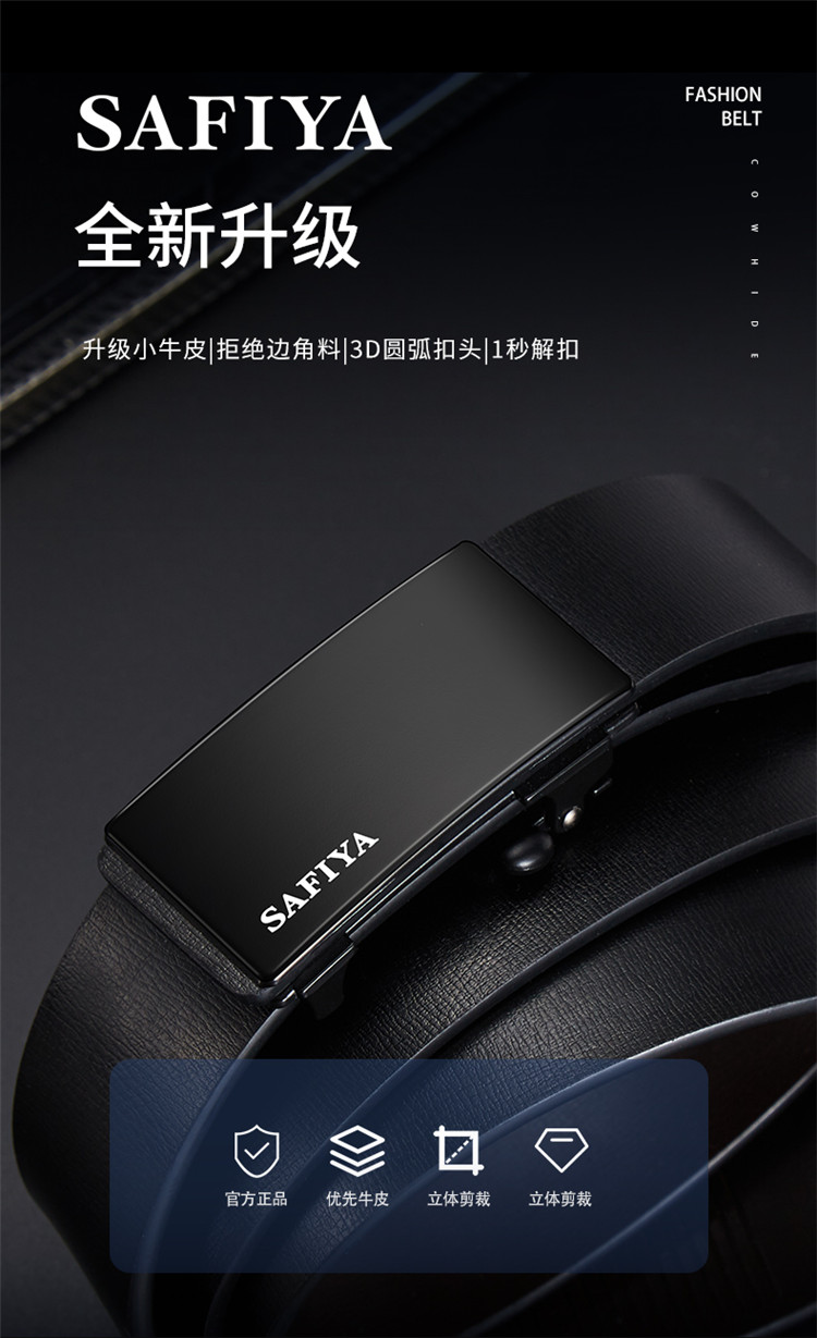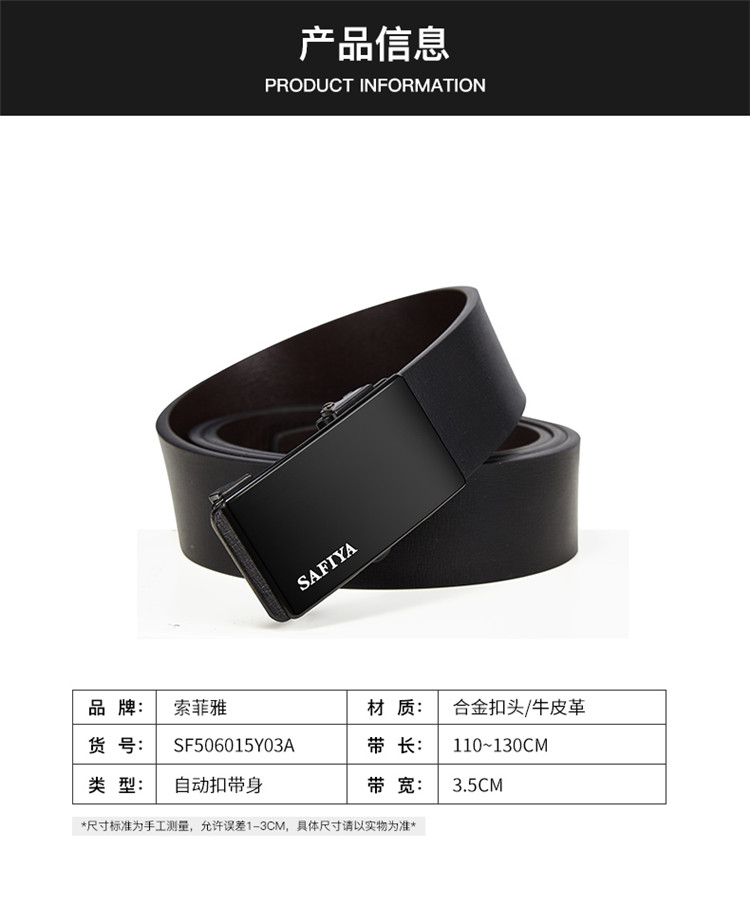 Safiya/索菲娅 2023新款二层牛皮自动扣男士皮带腰带商务休闲腰带SF506015Y
