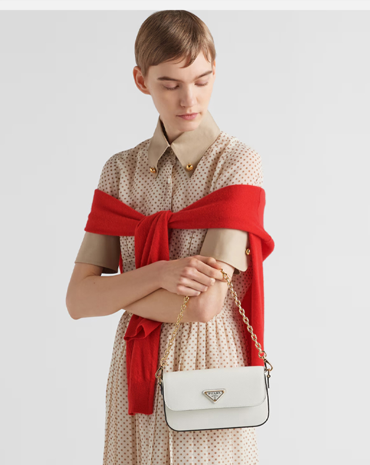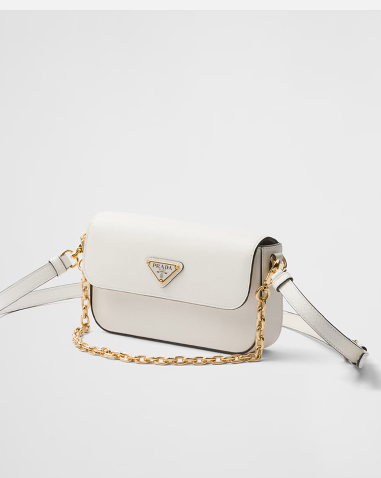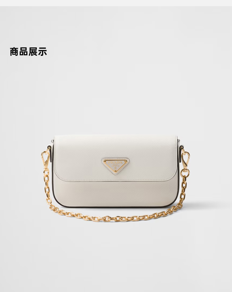 【二】PRADA 普拉达 女士珐琅金属三角形徽标皮革单肩包 白色 1BD356 NZV F0PG7 OOO