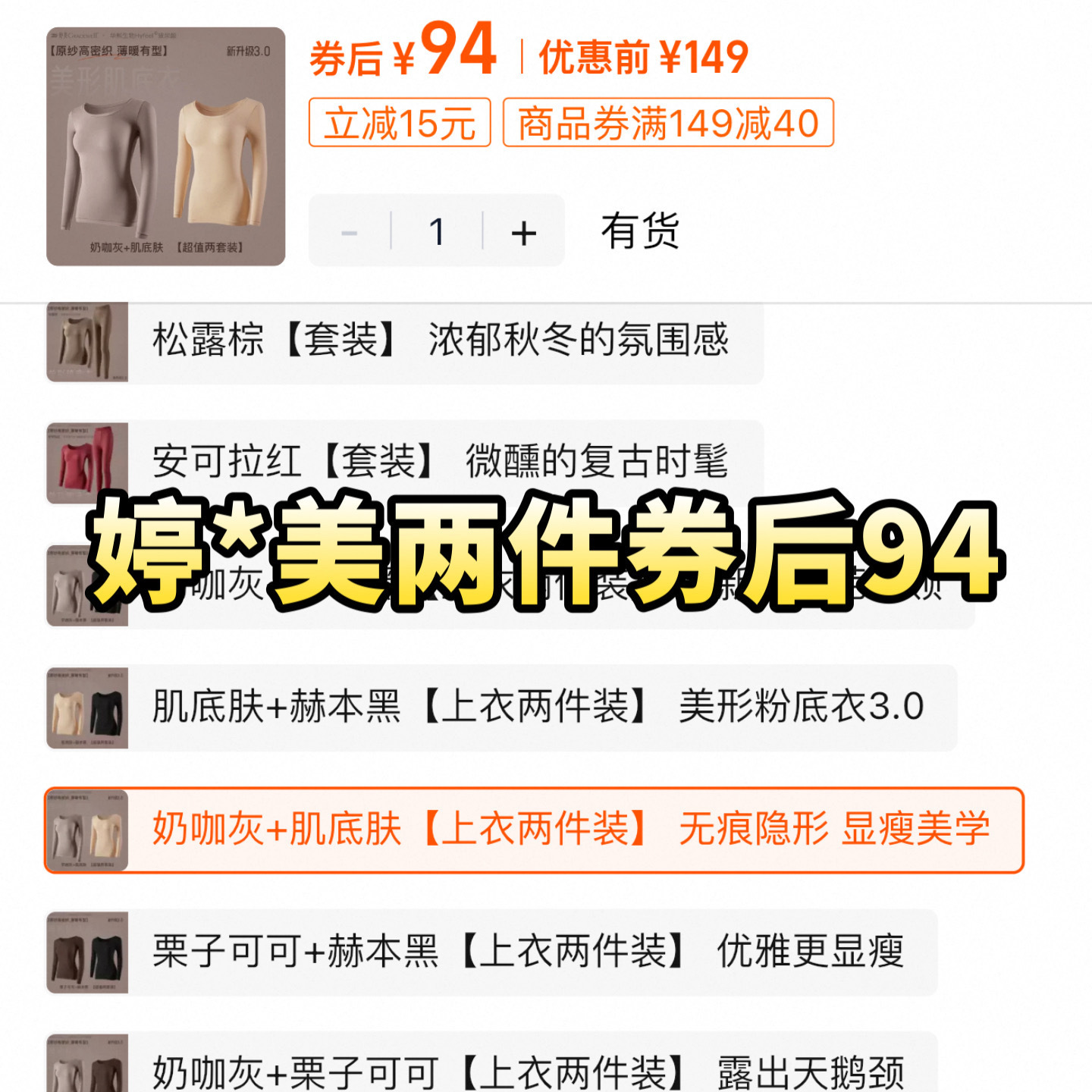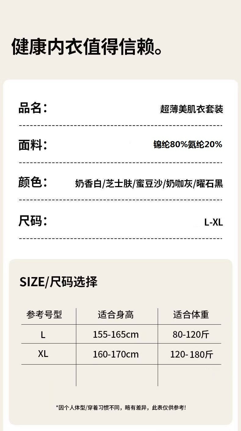 【多妈团购 婷美同厂 零压美肤肌底衣 上衣+裤子 套装,任意挑2套59.9(2套分别加入购物车一起下单哦)】升级版0压玻尿酸隐形肌底衣保暖,10A抗菌,除螨率81.3%,2020多维面料4倍弹力-安嘉