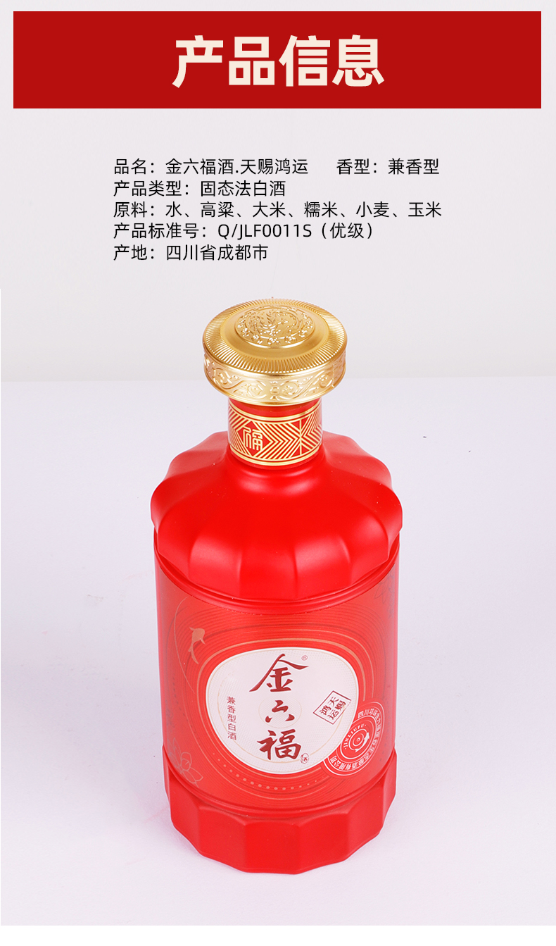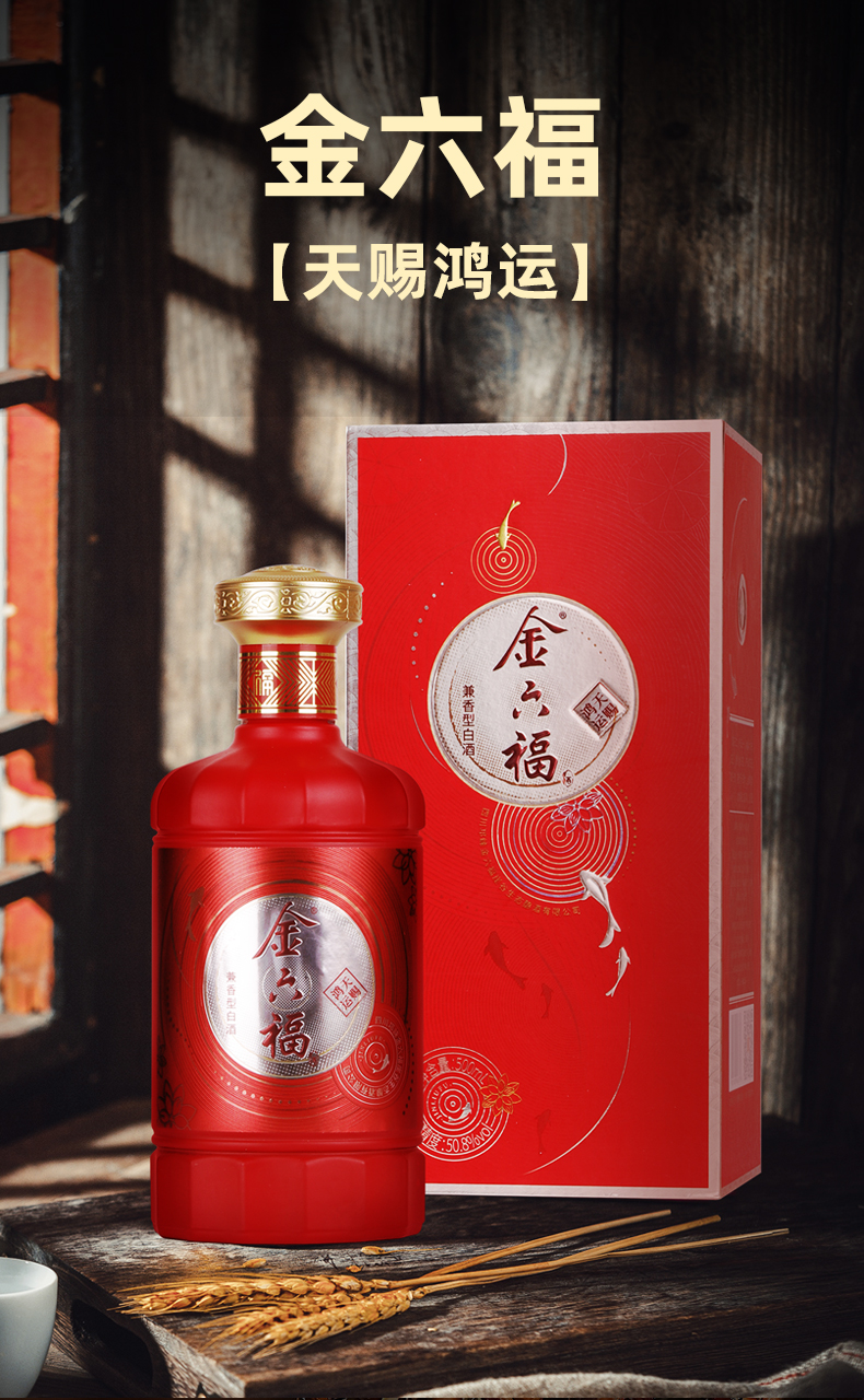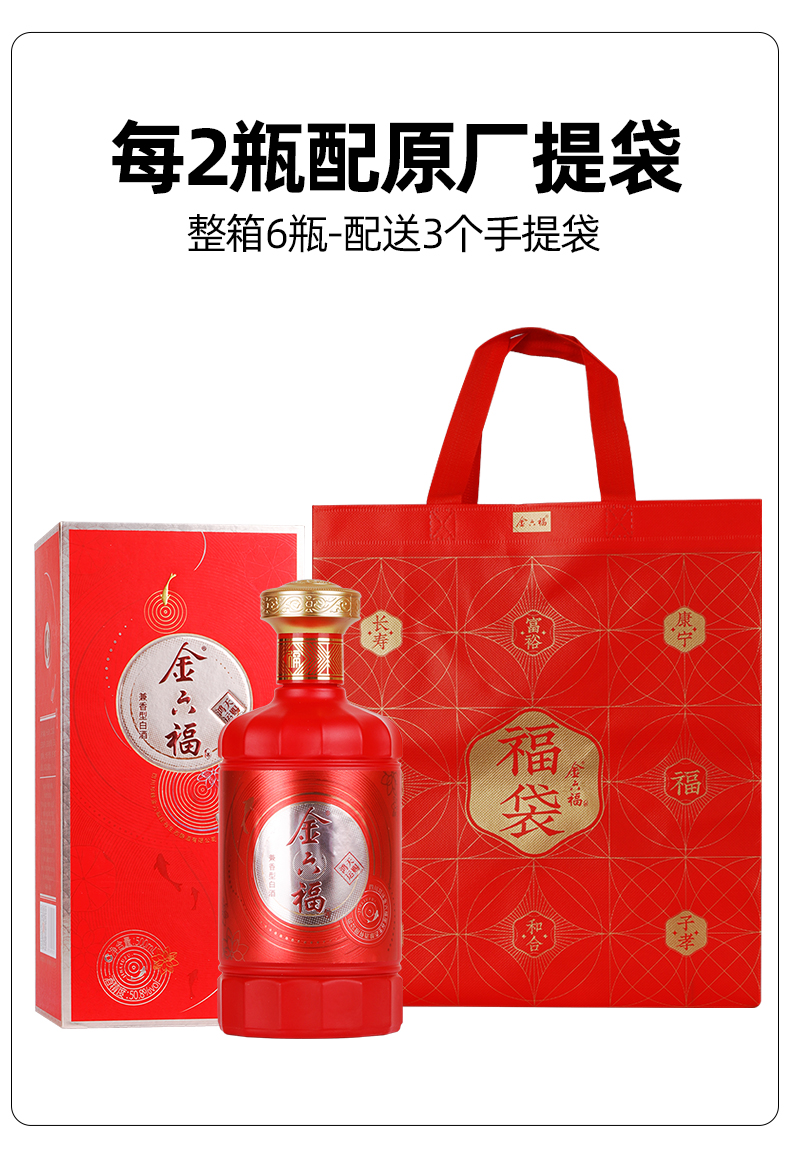 [金六福天赐鸿运]50.8度-兼香型固态法白酒整箱6瓶带礼袋批发送礼酒