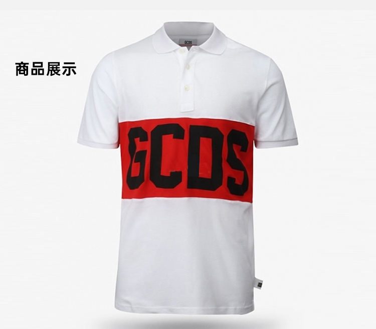 GCDS 男士字母徽标印花棉质短袖polo衫 白色 ACC94U020078 WHITE