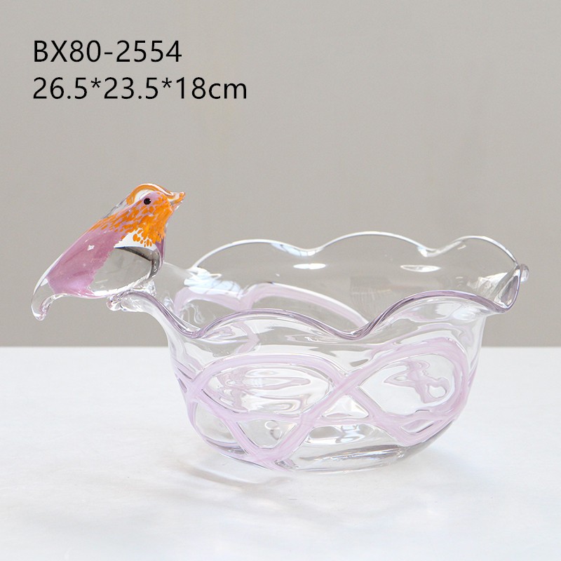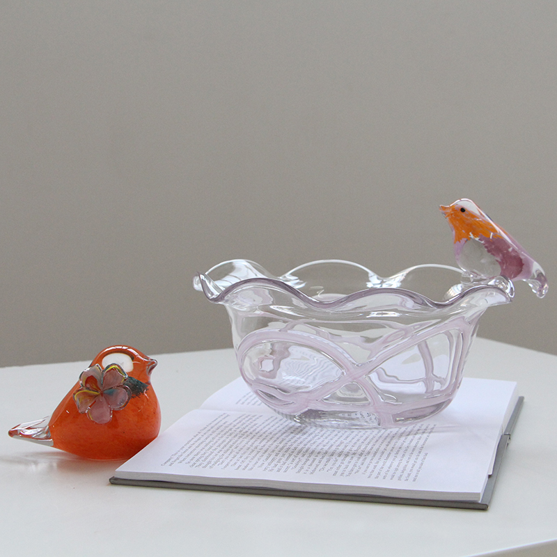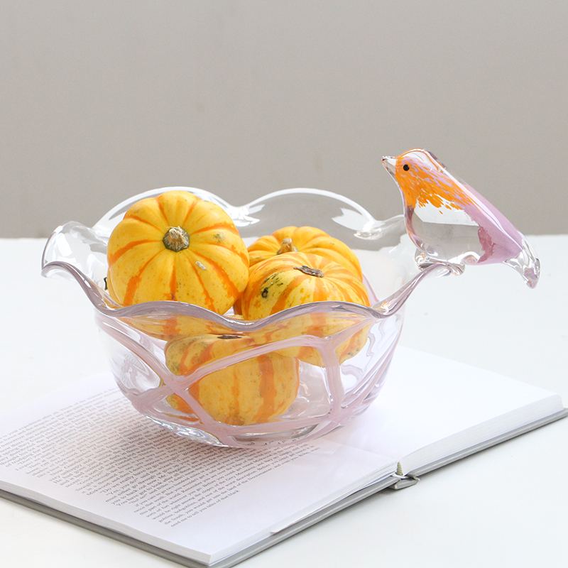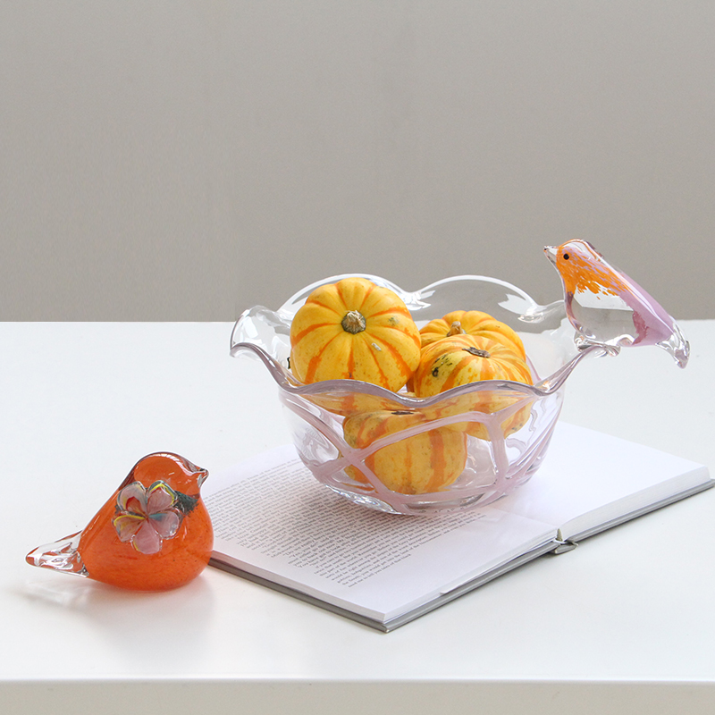 北欧创意轻奢风小鸟玻璃彩色果盘装居家送礼家用甜品水果碗盘收纳