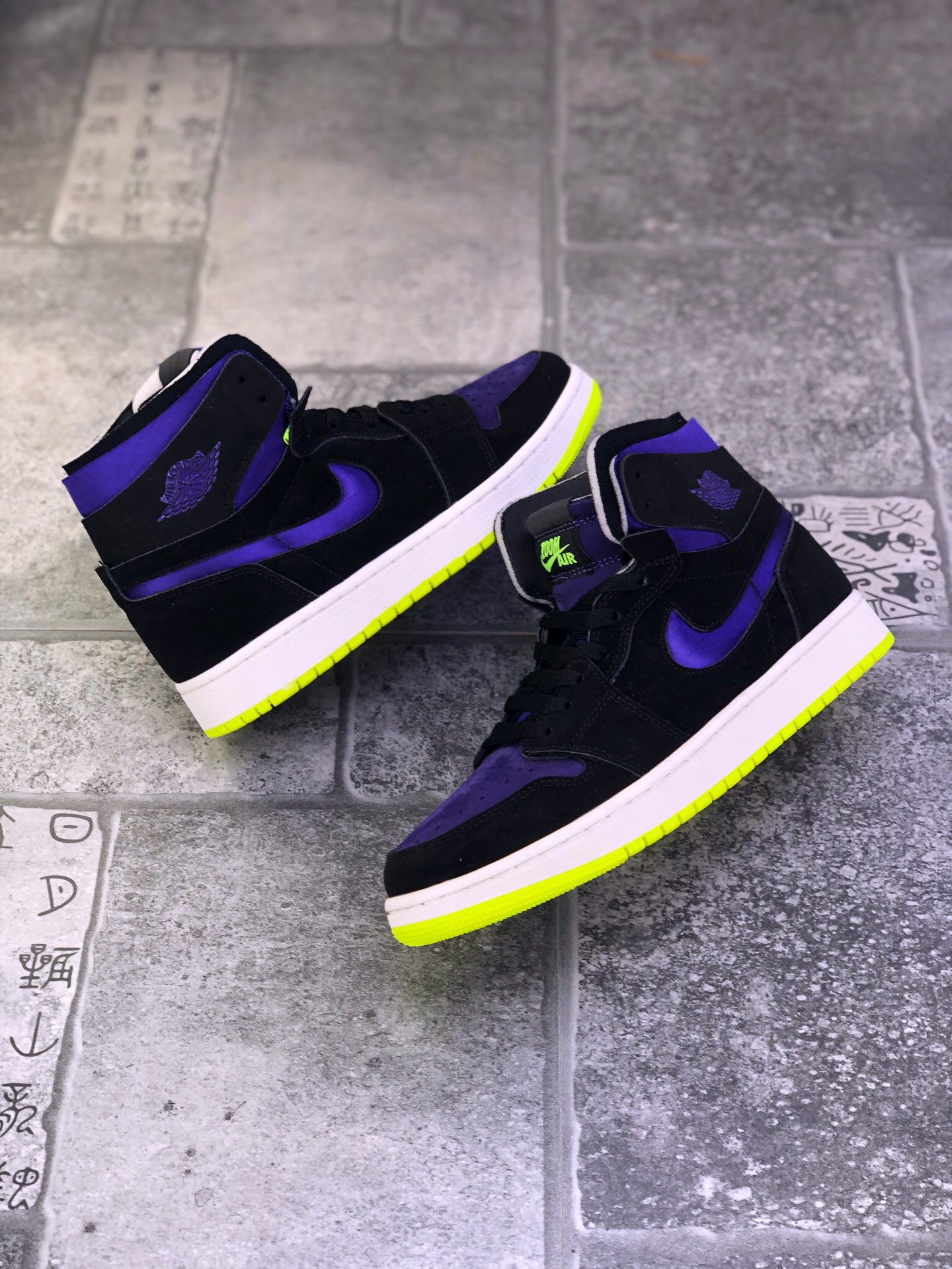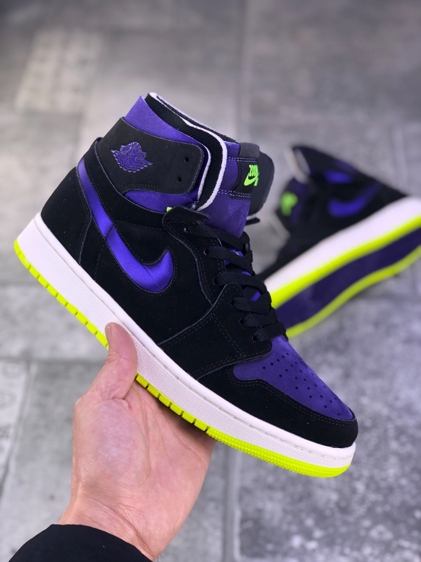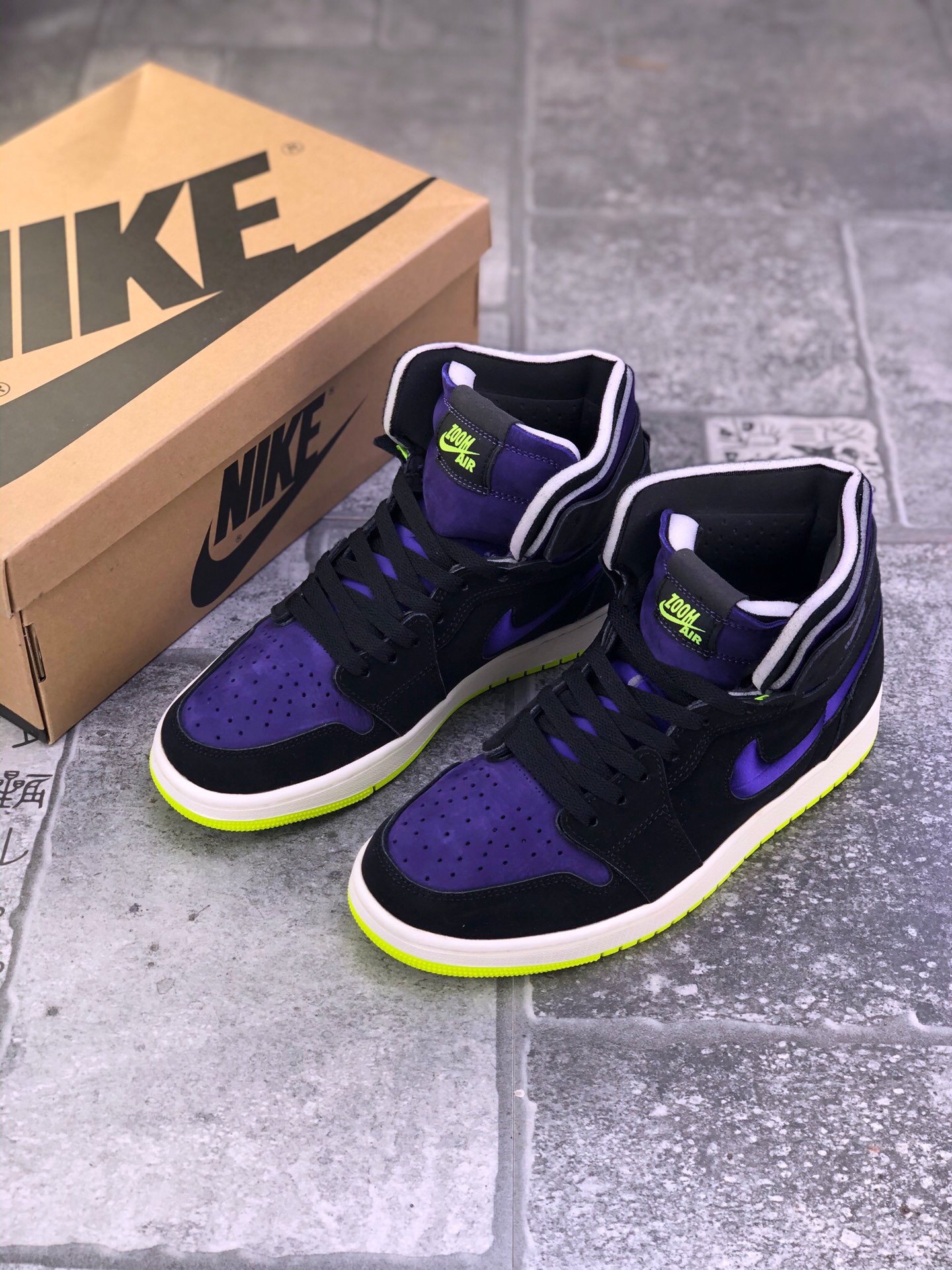 Air Jordan 1 Zoom Air CMFT “Lemon Venom” “Plum Purple” 柠檬毒液鞋身采用紫色为鞋身主调