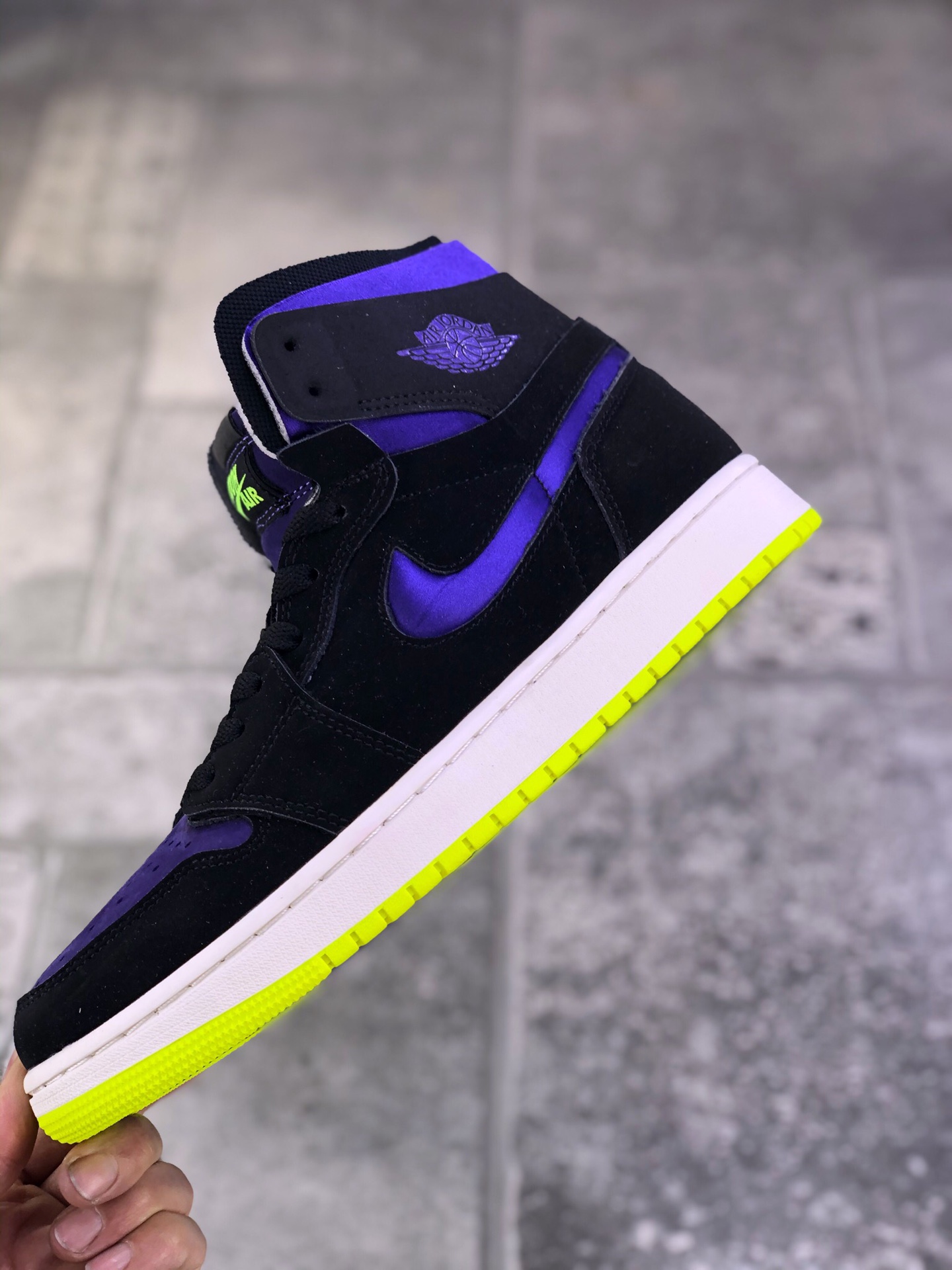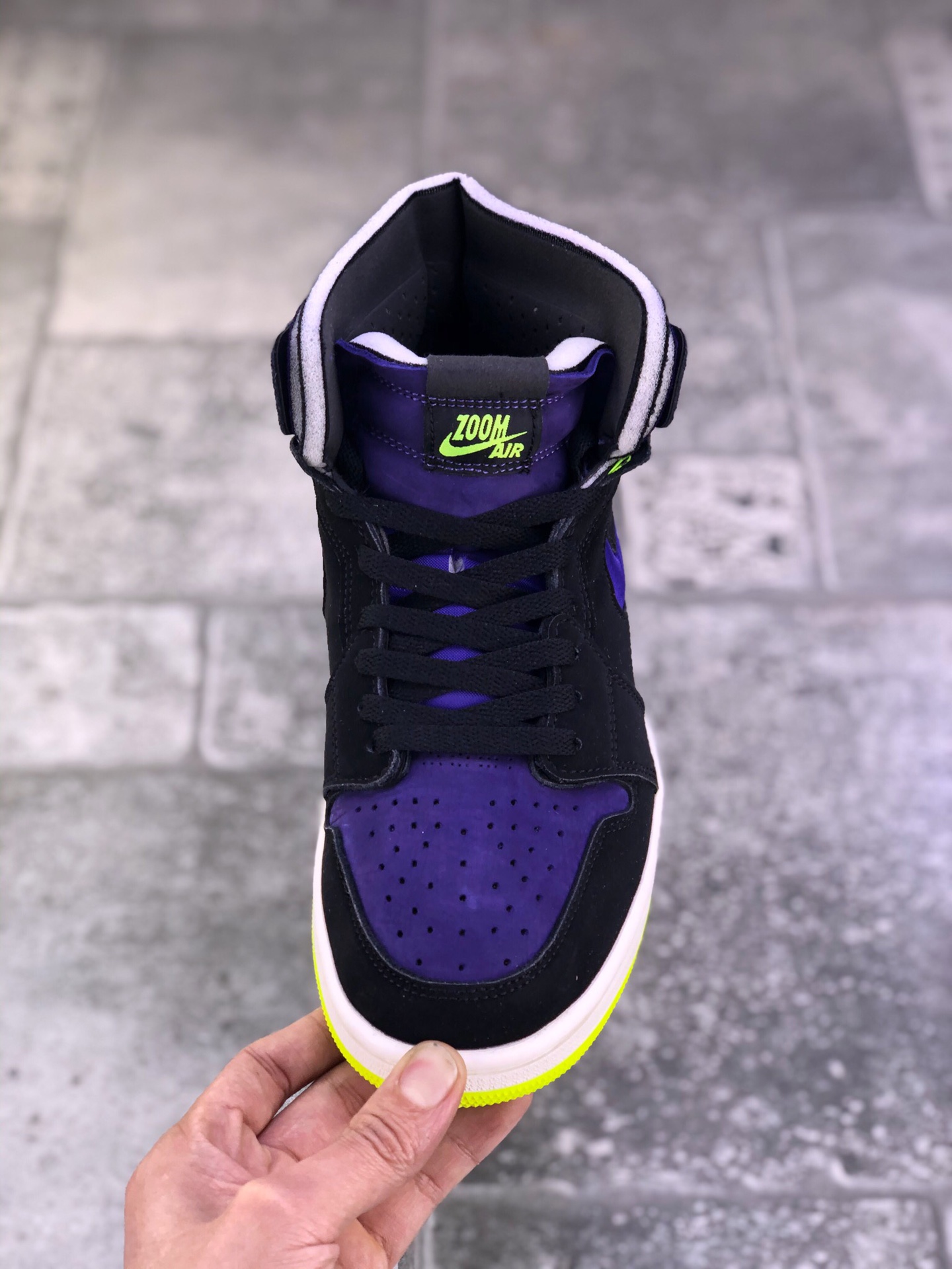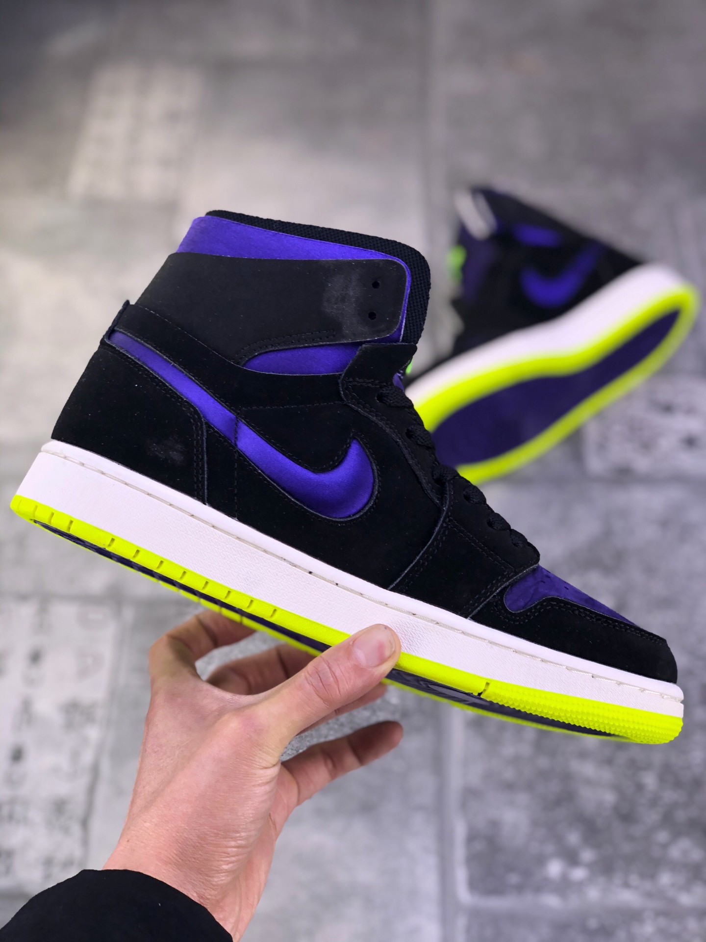 Air Jordan 1 Zoom Air CMFT “Lemon Venom” “Plum Purple” 柠檬毒液鞋身采用紫色为鞋身主调
