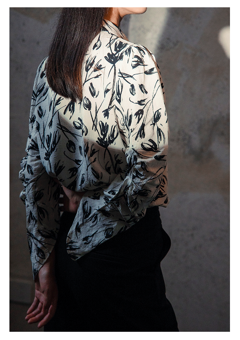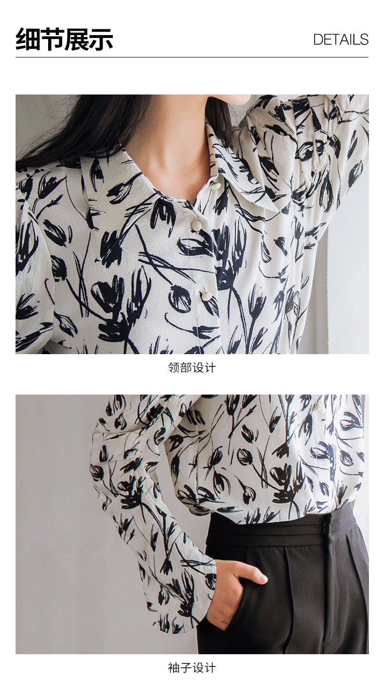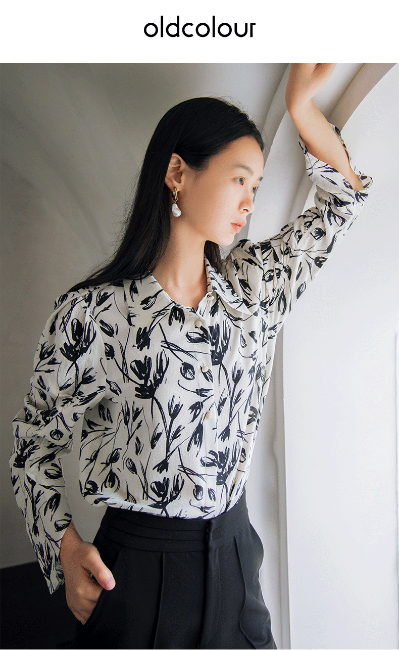 oldcolour春秋季新款小众设计感休闲时尚街头风碎花衬衫女P330107A1