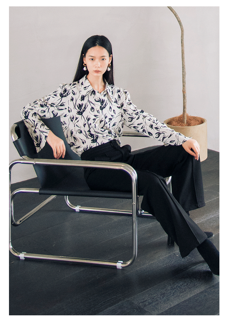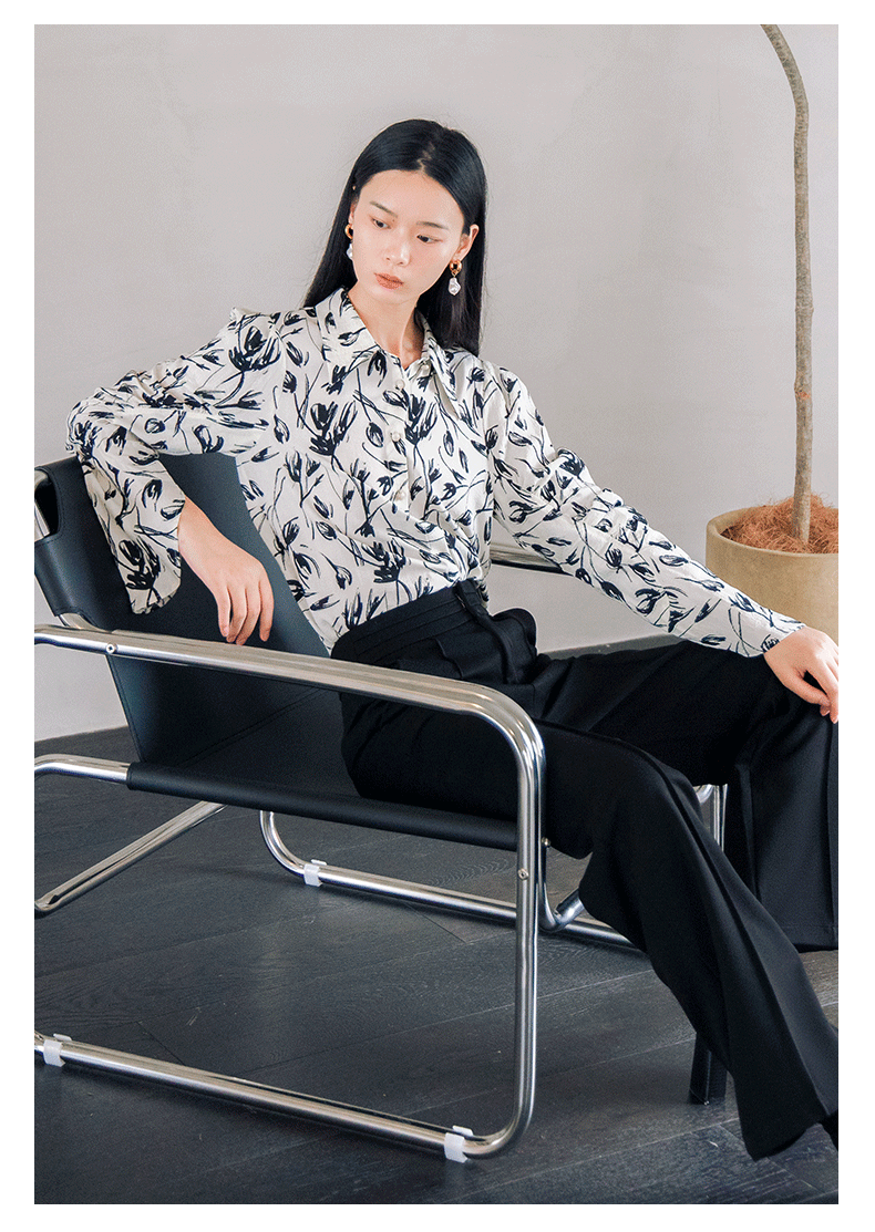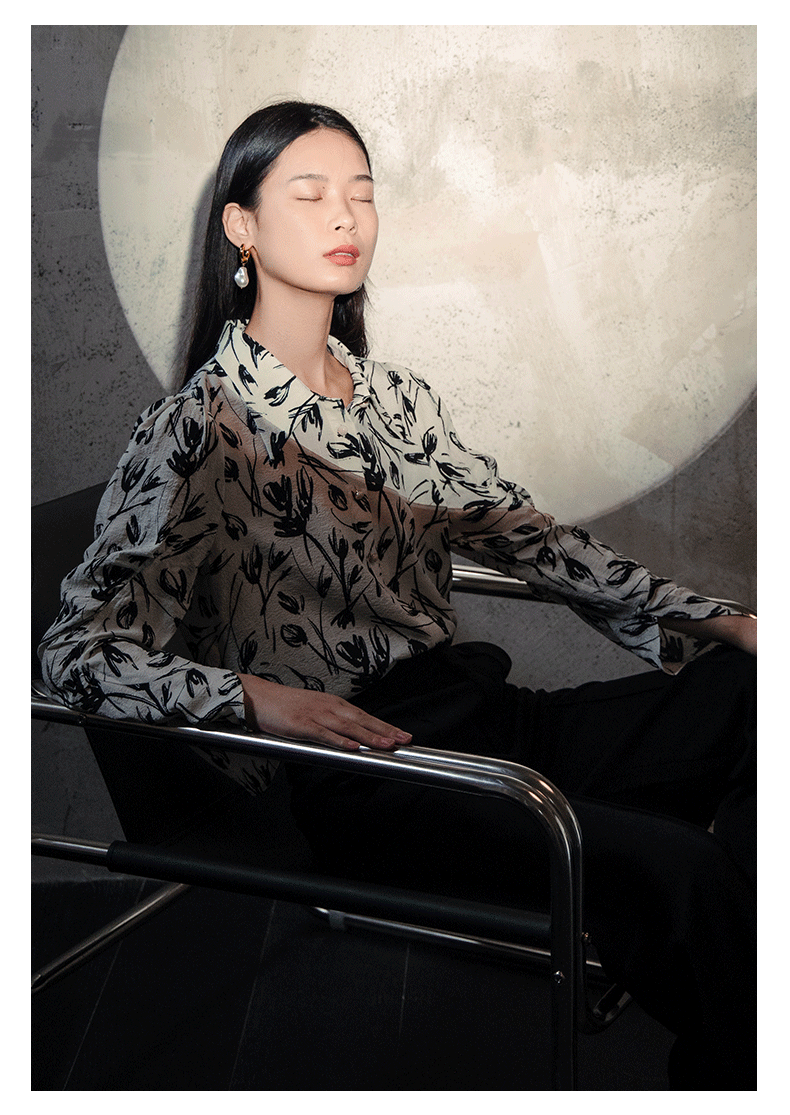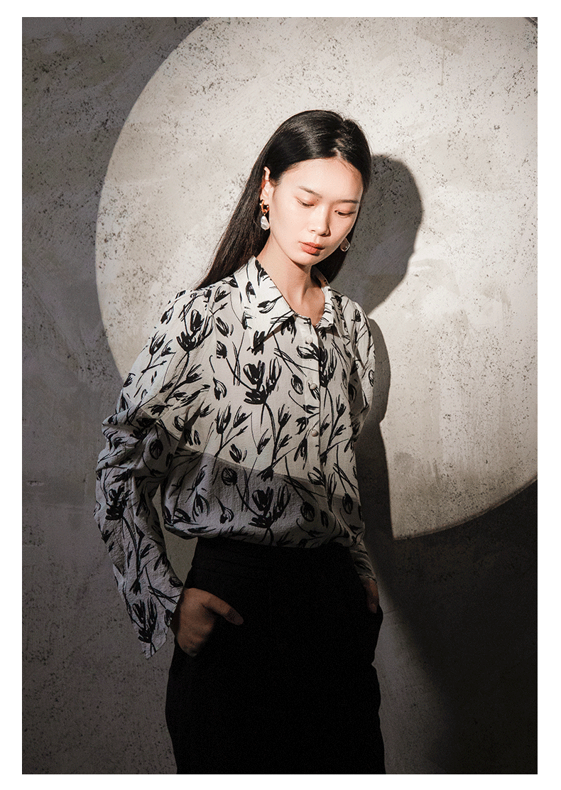oldcolour春秋季新款小众设计感休闲时尚街头风碎花衬衫女P330107A1