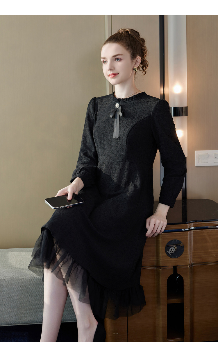 奢姿2025年冬季新款大码女装气质蕾丝连衣裙胖妹妹木耳领时尚裙子9934853239