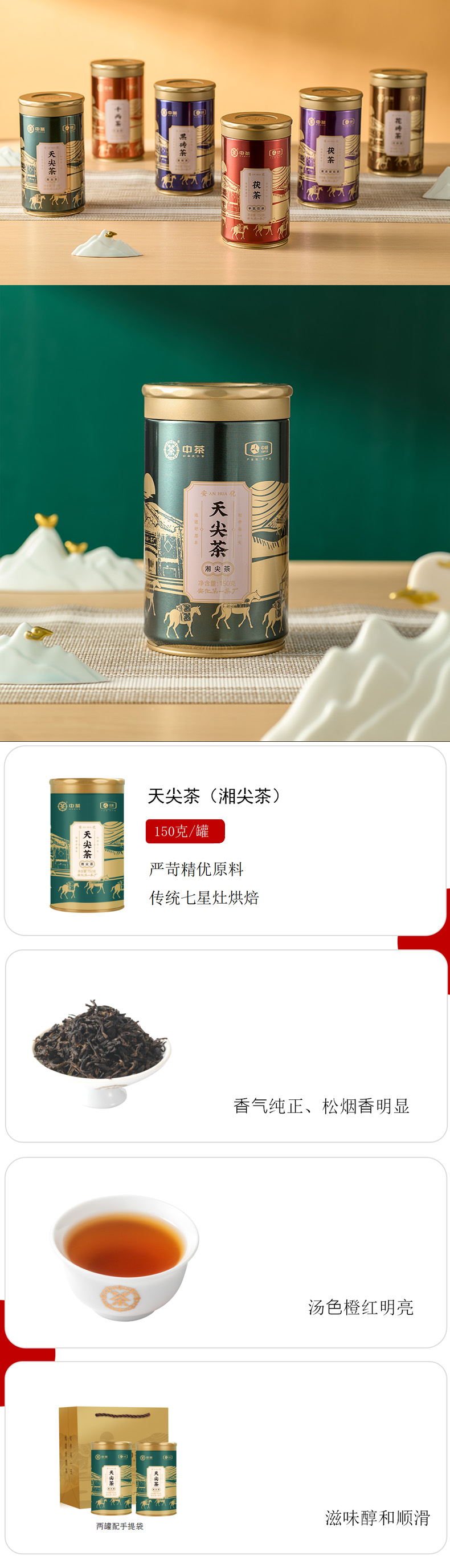 中茶HT4049天尖茶(湘尖茶)150g安化黑茶便携装