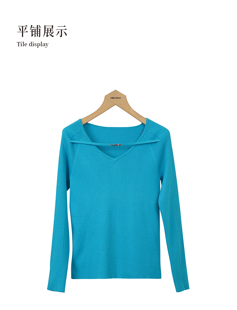 oldcolour设计感针织衫秋季新款V领修身套头打底衫女O34052406