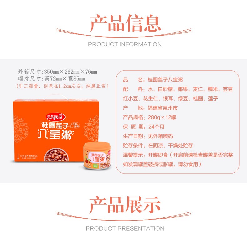 喜多多 元气秘笈桂圆莲子八宝冰糖百合黑糖红枣枸杞粥组合280*6罐